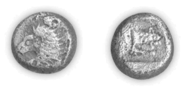 Silver. The weights range from 1,7 to 2,6 gr. d=11/12-12/13 mm. Obverse: Lion’s head to the right/left, showing teeth. Reverse: Lioness’ protome to the right in quadratum incusum. Mint: Phasis. Nominal: Attic system hemidrachm Date: 5th c. BCE