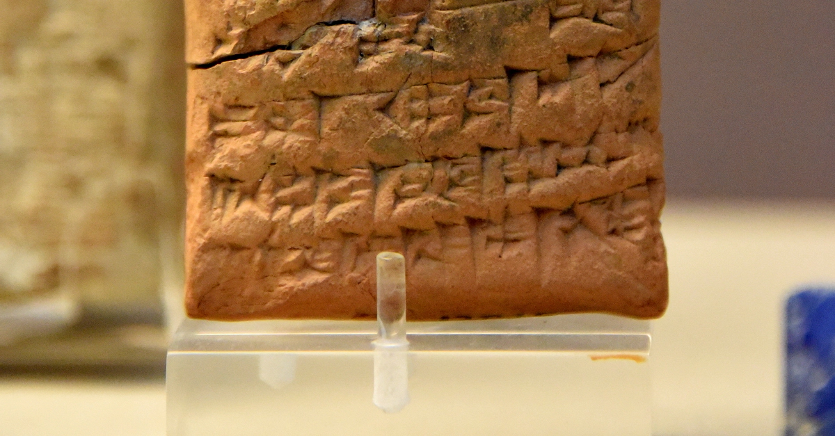 The cuneiform text of this clay tablet orders men to go to Babylon for a court hearing. This letter from Hammurabi is addressed to an official named Sin-iddinam. Old Babylonian Period, reign of Hammurabi, 1792-1750 BCE. From Larsa, Southern Mesopotamia, modern-day Iraq. (The British Museum, London).