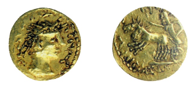 Gold. Weight: e.g. – 2,87 gr., 3,37 gr., 3,44 gr., 3,55 gr. d=18 mm., 19 mm., 20/21mm. Obverse: Draped bust of Valerian, laureted, right, a bit crude in style. Distorted Latin inscription: prototype – IMP. C. P. LIC. VALERIANVS AVG. Circle of the dots. Reverse: Schematic effigy of Victoria in biga, left. Distorted Latin inscription: VICTORIA AVGG. Mint: Unknown. Nominal: The weights range approx. from 2,87 gr. to 3,55 gr. Date: Second half of the 3rd c. CE. In the 3rd century CE Kartli/Iberia had a shortage of the Roman coins, which were very popular. Thus, the king of Kartli decided to issue local money patterned on the Roman coins being not particularly scrupulous about the images and inscriptions.