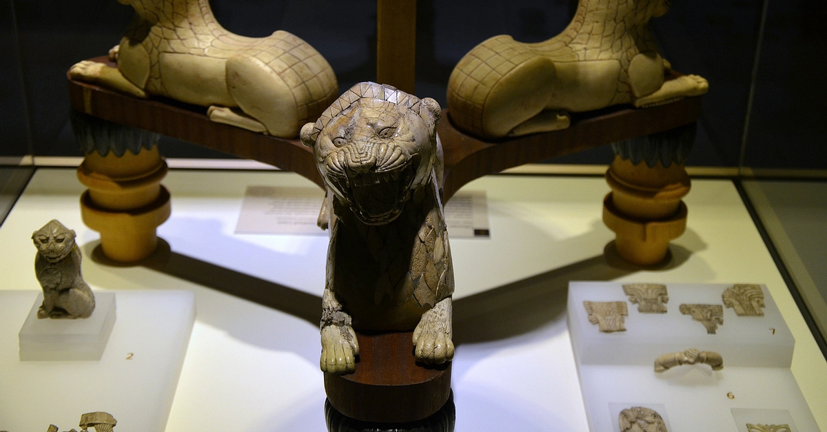 Reconstruction of an Urartian tripod stand used for burning incense and for illumination. It is decorated with lions made of ivory, 8th century BCE. From Altintepe, an Urartian fortress and temple site located in eastern Anatolia overlooking the Euphrates River. (Museum of Anatolian Civilizations, Ankara)