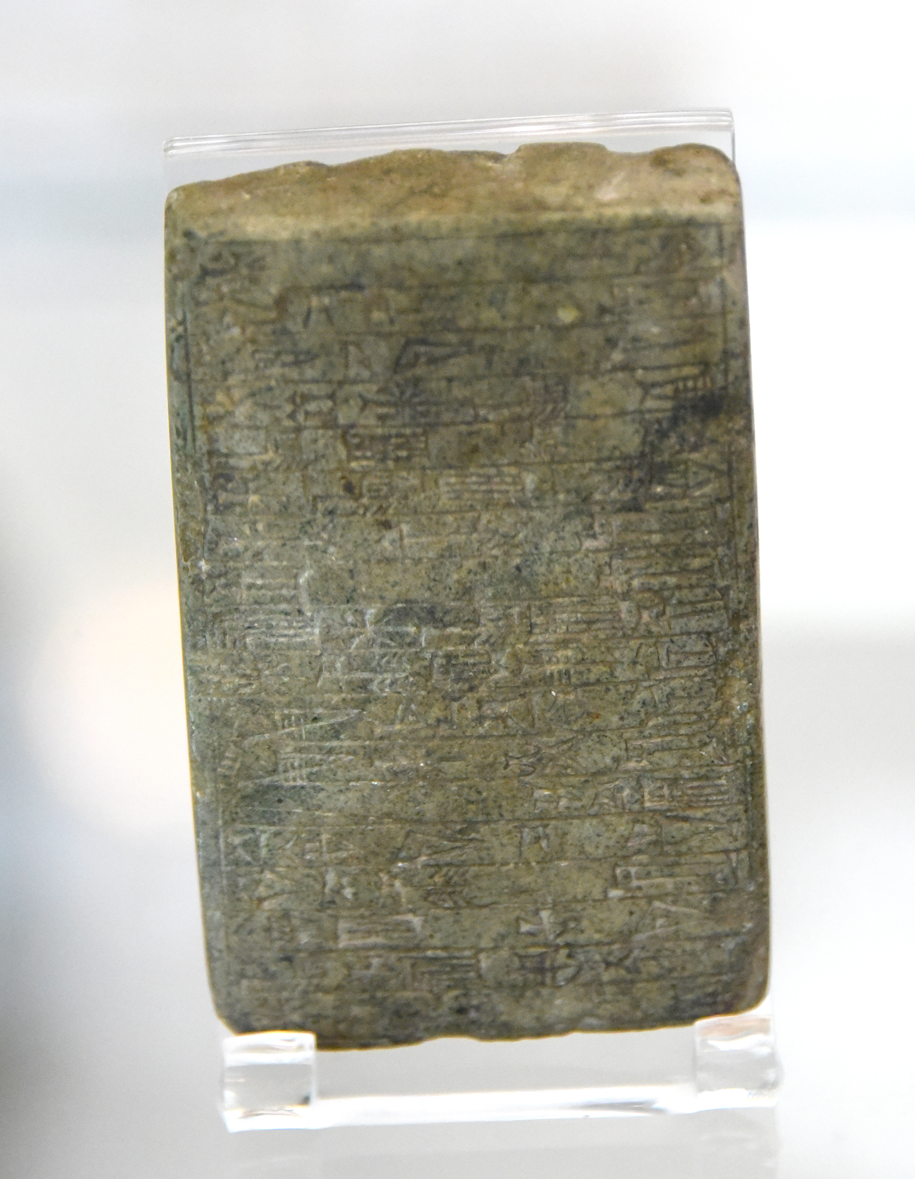 This is a stone tablet, inscribed with a cuneiform text. This was a dedication to the Temple of Nanna at Kar-Zida of Ur, by Amar-Seun (Amar-Sin). Amar-Seun was king of Ur III dynasty. From Southern Mesopotamia, modern-day Iraq. Neo-Sumerian Period, reign of Amar-Seun, 2046-2038 BCE. Donated by Lieutenant-colonel S. Anderson. (The British Museum, London).