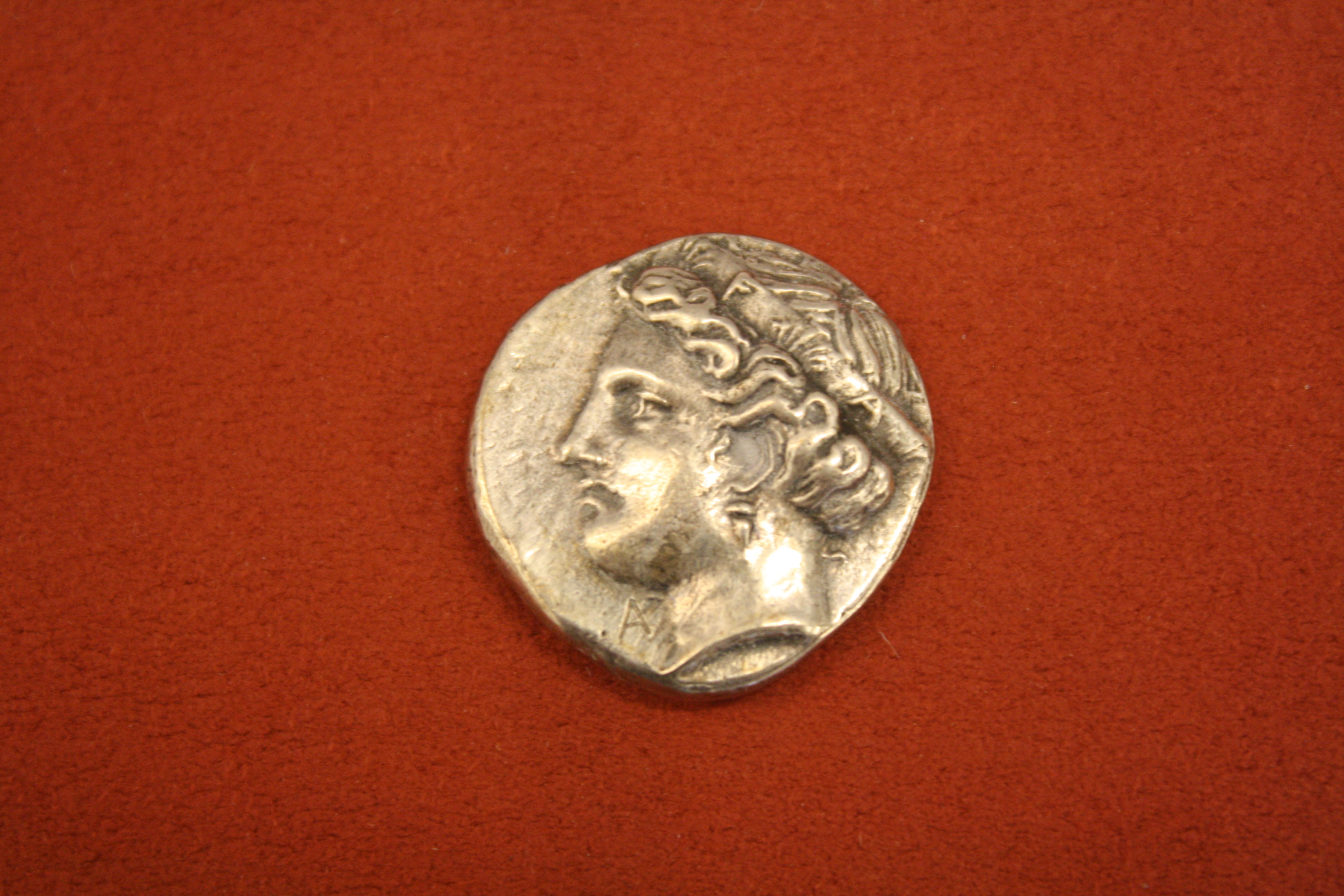 Silver stater from Elis, 340 BCE. O: Head of Hera. R: Eagle.