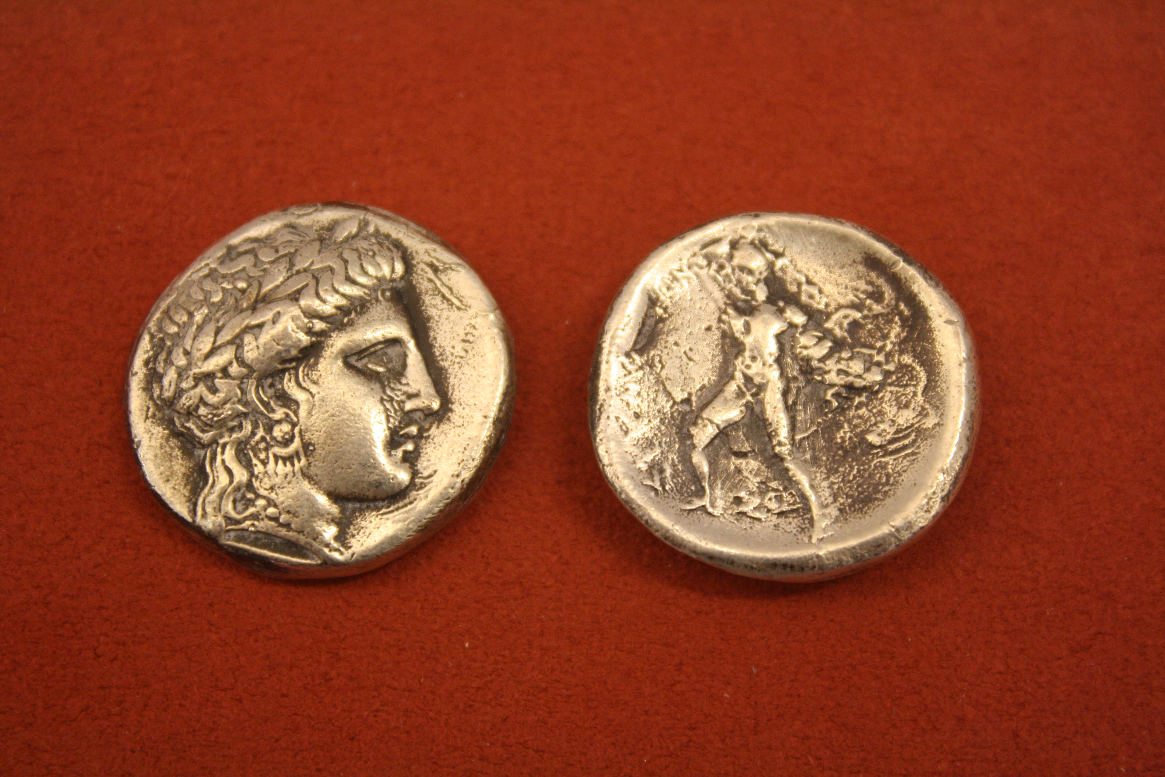 Silver stater from Stymphalos, Arcadia, 360-350 BCE. O: Head of Artemis Stymphalia. R: Hercules with club.