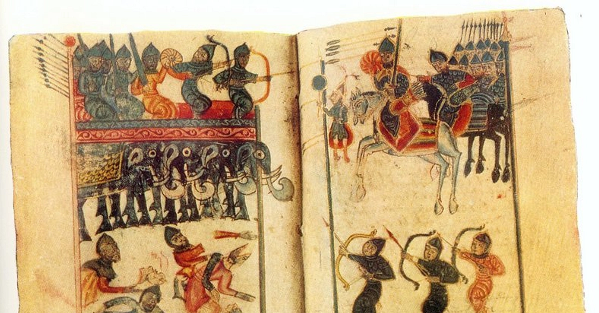 A medieval manuscript depicting the battle of Avarayr between Armenians led by Vardan Mamikonian and the Sasanian Empire in 451 CE.