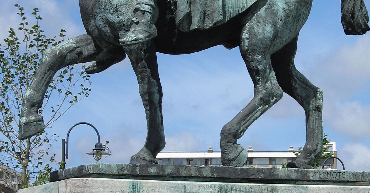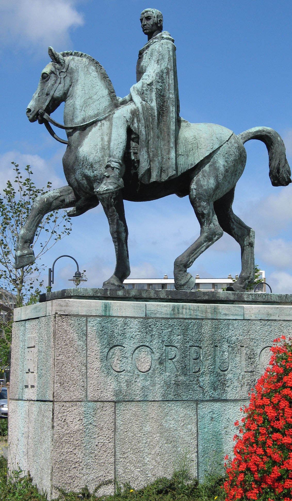 Statue of the 1st century CE Roman general Gnaeus Domitius Corbulo in Voorburg, Netherlands, by sculptor Albert Termote (1887-1978 CE)