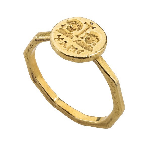This Byzantine gold marriage ring dates to the 3rd to 4th centuries CE. The ring measures 56 mm in circumference and the bezel measures 10x10 mm. Weight: 4.5 grams. (Metropolitan Museum, New York)