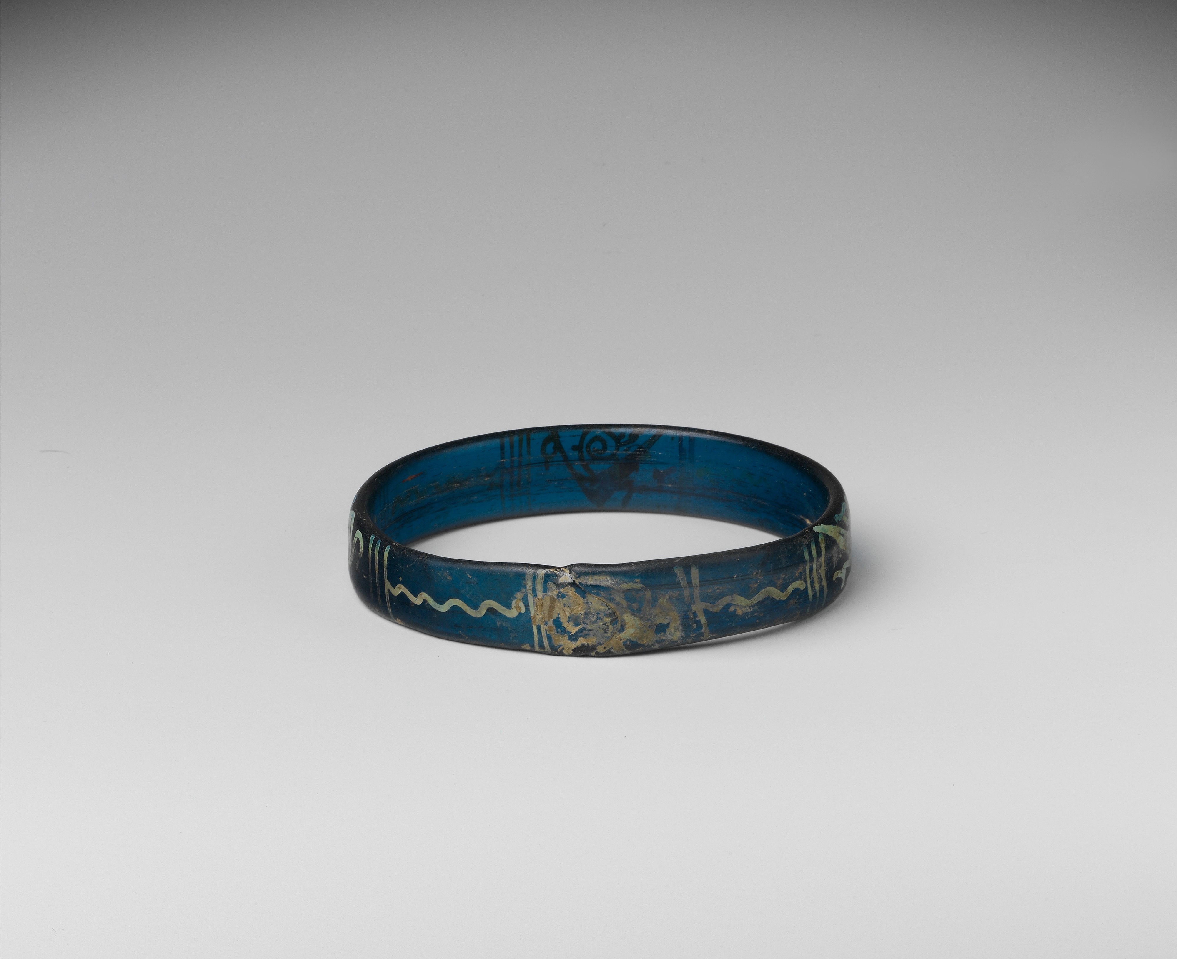 Created sometime between 1100-1400 CE, this Byzantine bracelet is made of glass and a silver stain. It measures 7.5 x 1.4 x 0.4 cm. (Metropolitan Museum of Art, New York)