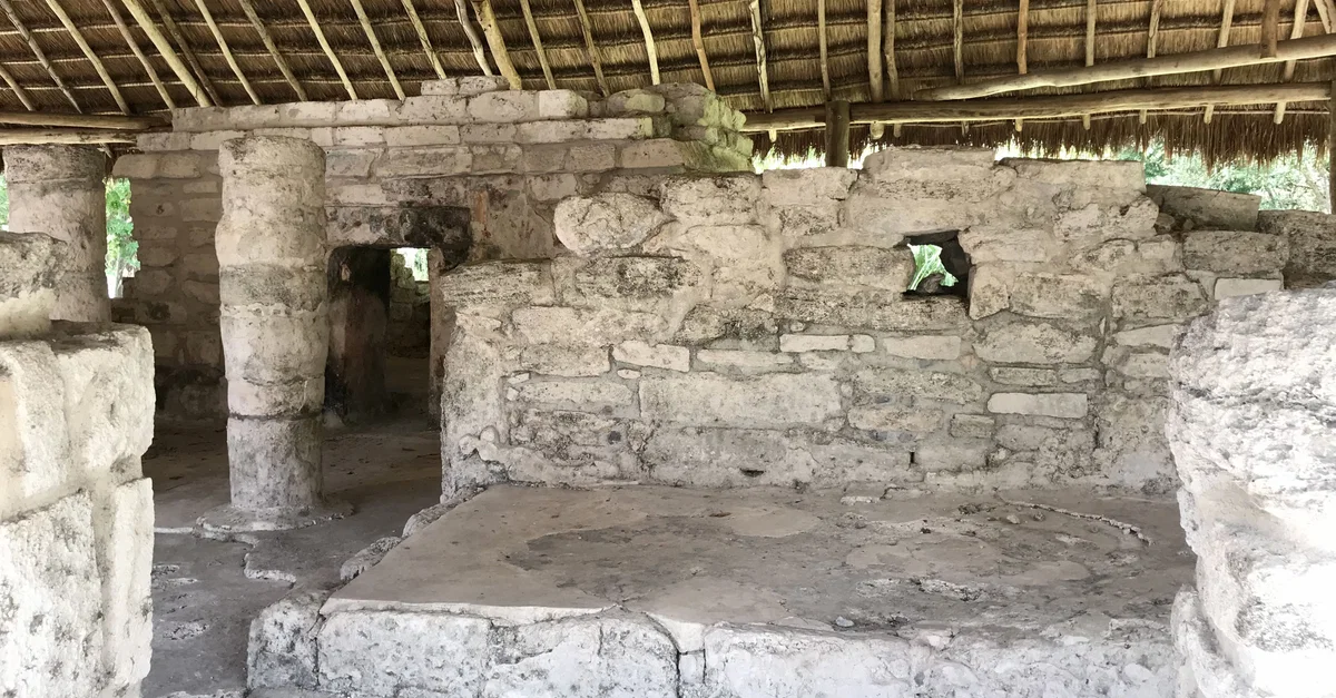 This is another view of the "Little Hands" structure at San Gervasio, which is located on the island of Cozumel in Mexico. This building was constructed in two phases between c. 1000-1650 CE by the Maya.