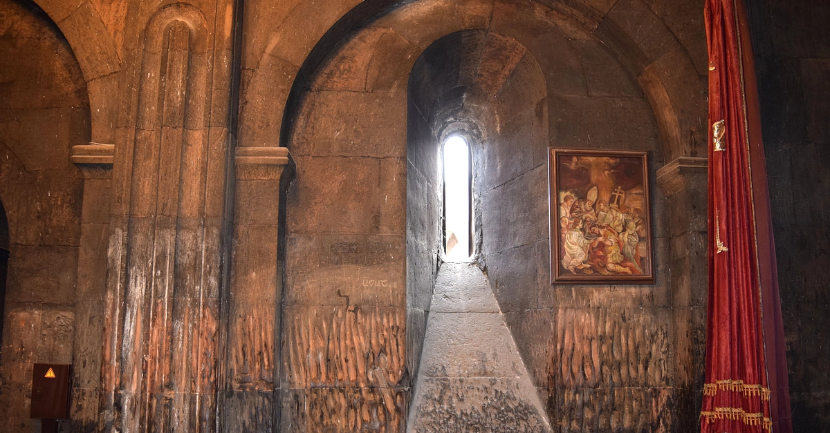 This is the interior of the St. Astvatsatsin Church, which was built in the 1660s CE. Khor Virap is an ancient Armenian monastery located near the border with Turkey some 8 km (5 mi) from the town of Artashat, Armenia.