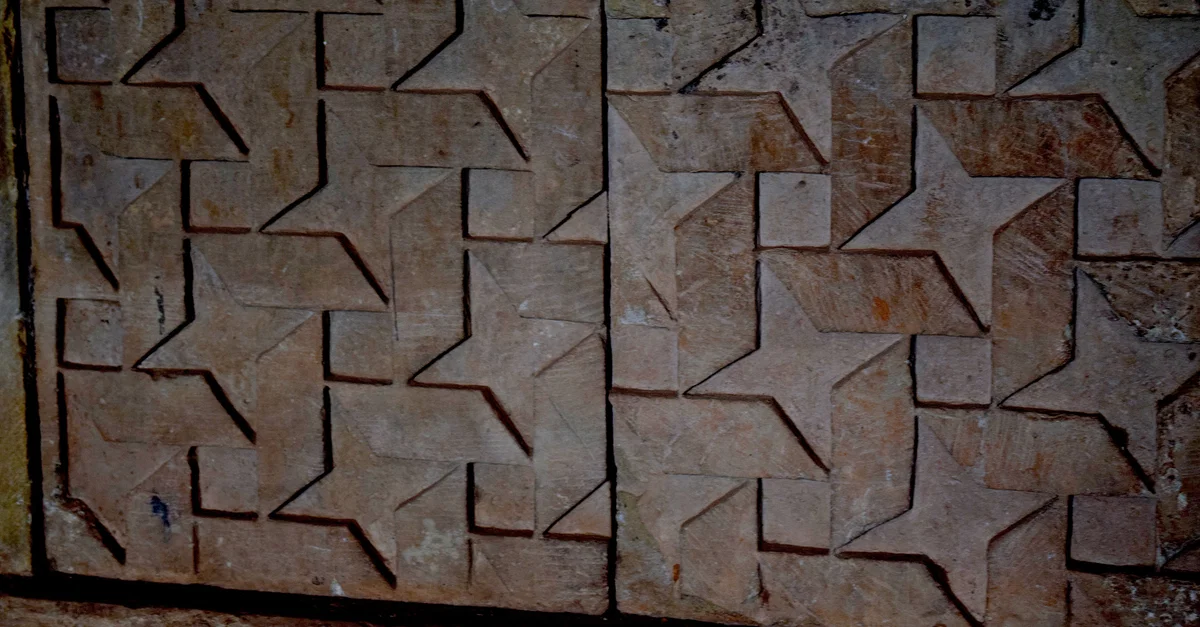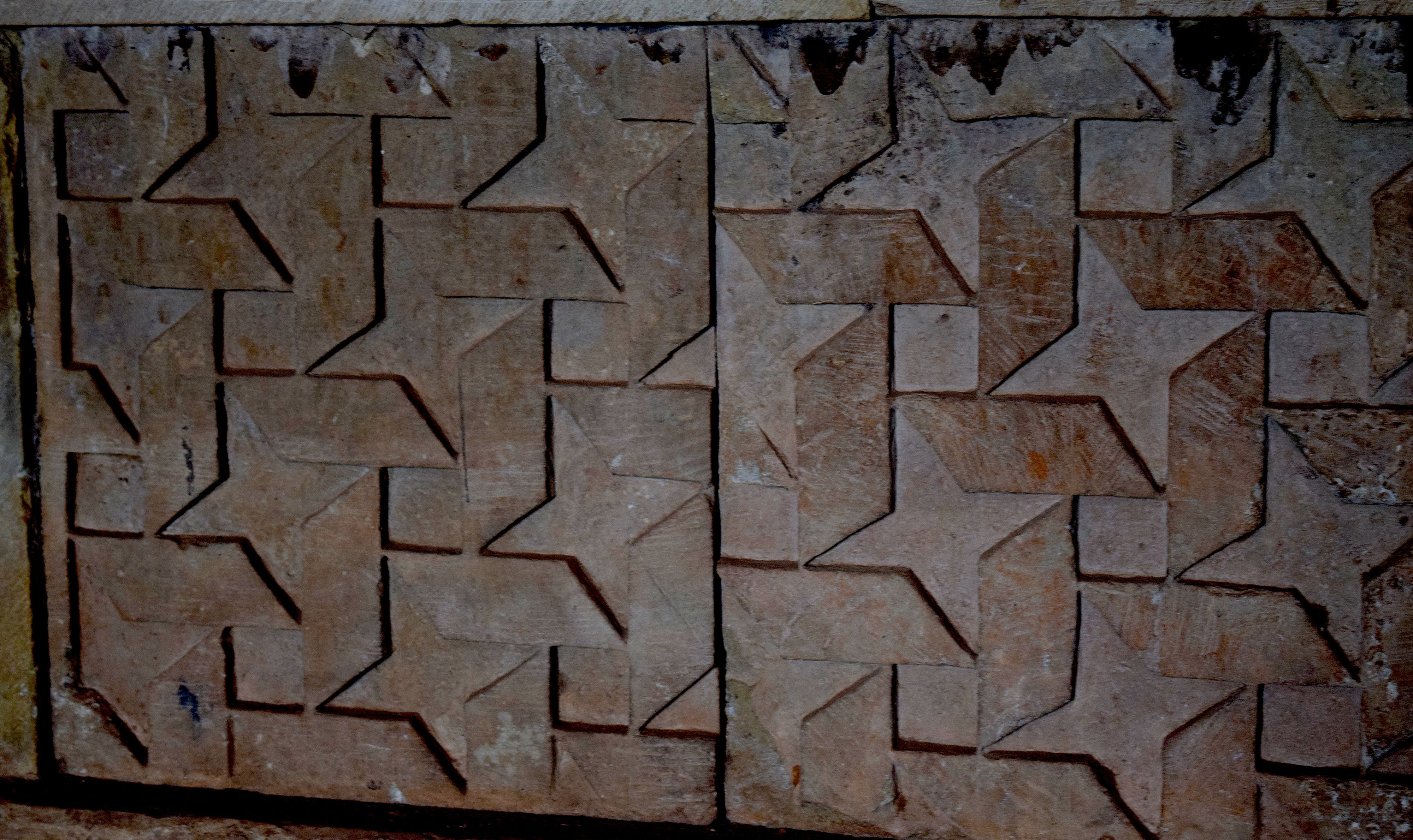 Situated along the Silk Route between Byzantium and Persia, medieval Armenia was influenced by its neighboring cultures. In this picture, one can clearly detect strong the Persian artistic influence on this geometric bas-relief located in the Surb Karapet Church, which is part of the famed Noravank Monastery.