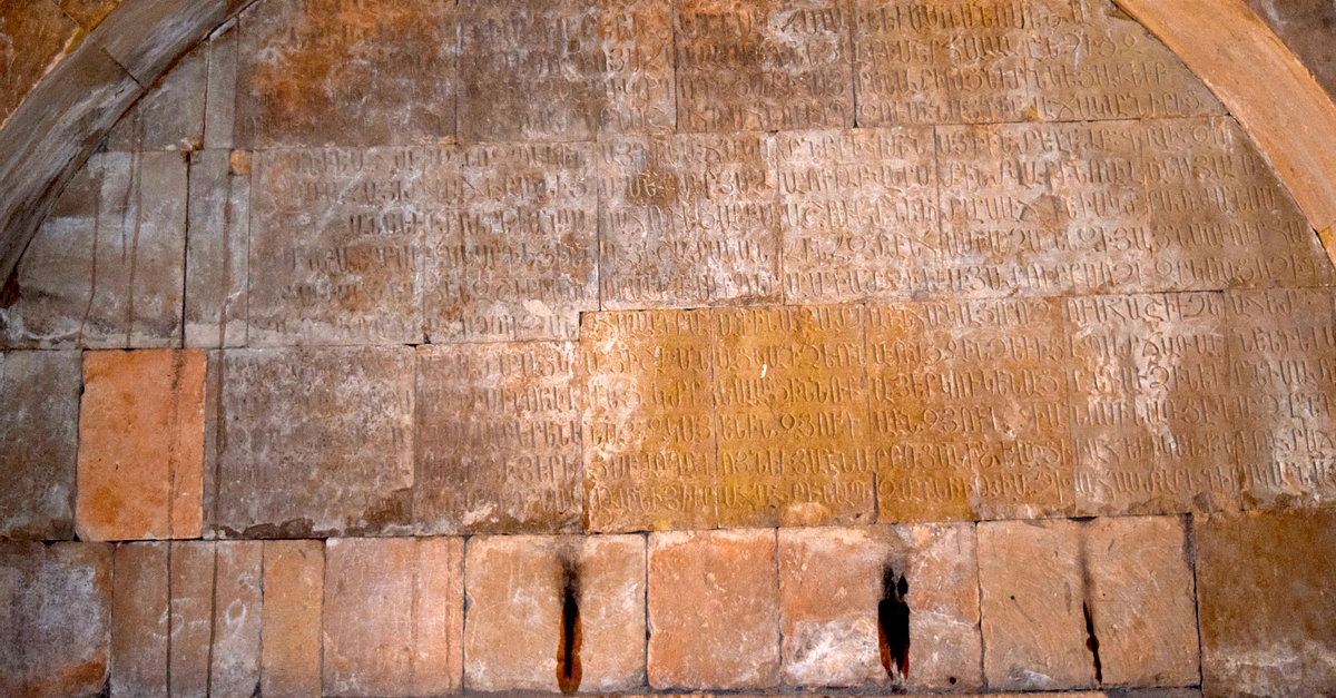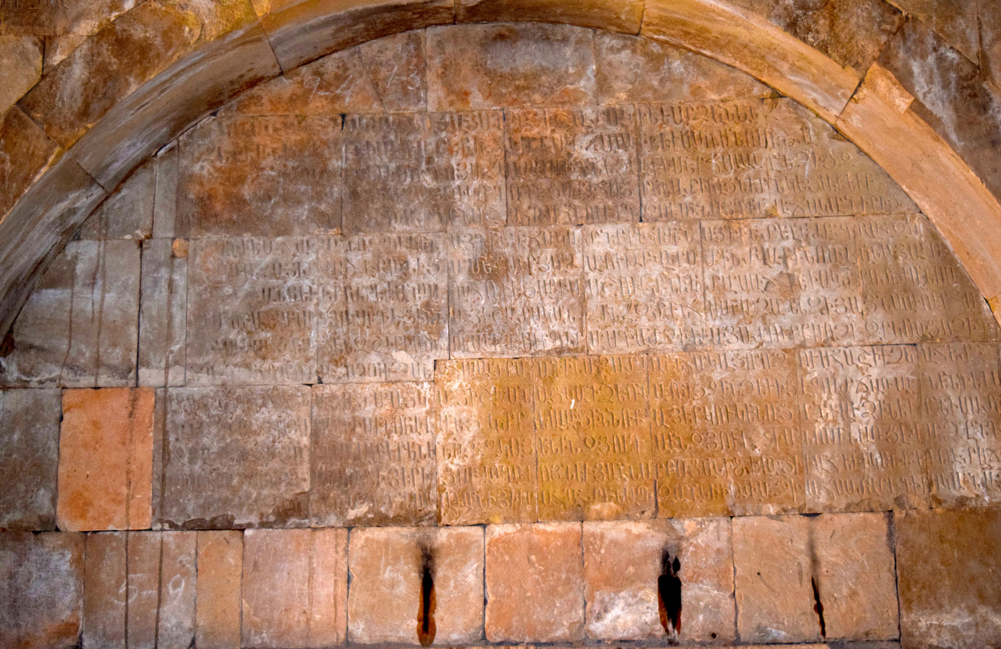 This decorative inscription in medieval Armenian can be found inside the Surb Karapet Church, which forms part of Armenia's celebrated Noravank Monastery.