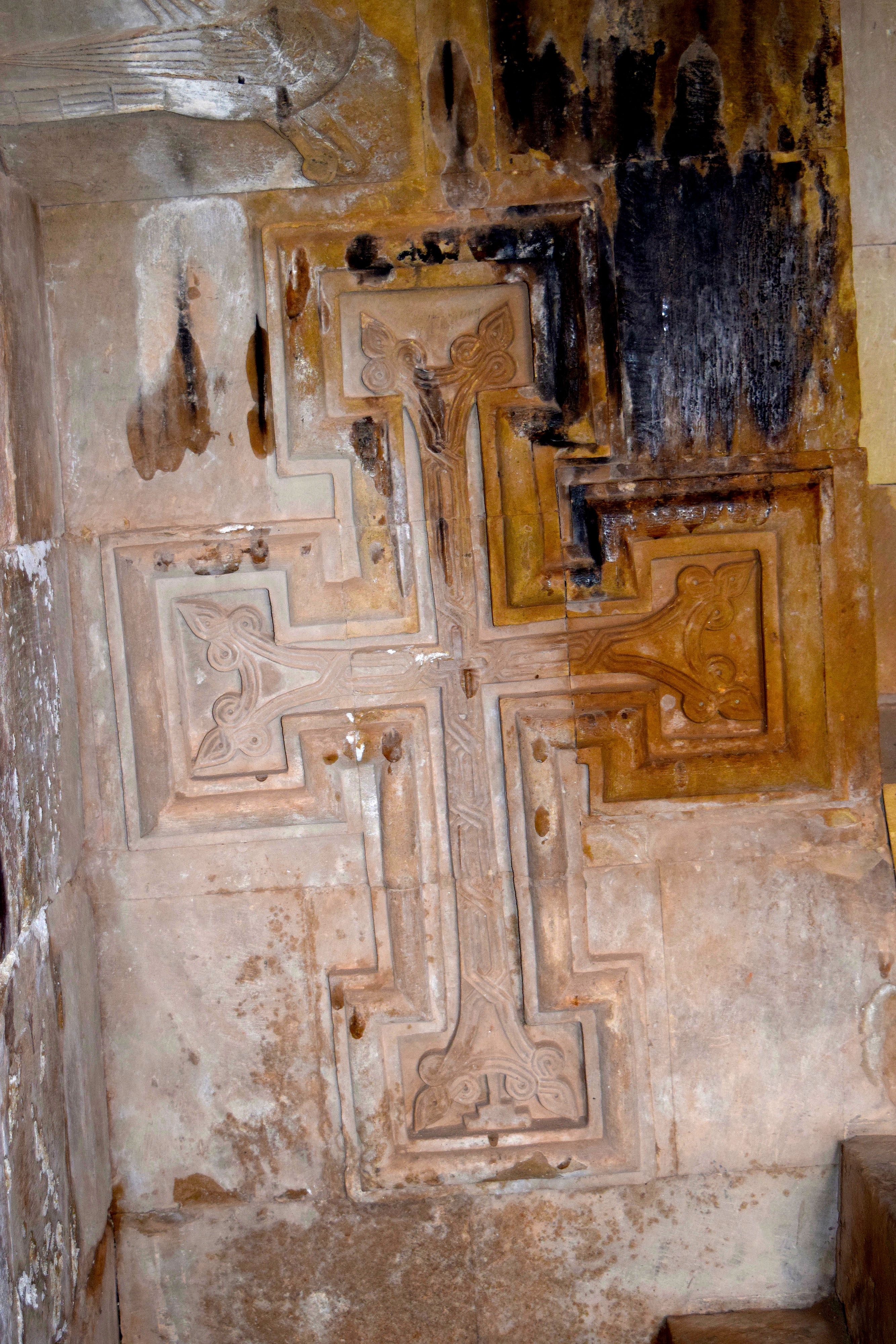 This unusual but attractive Christian cross is located in the medieval Surb Karapet Church, which is located in present-day Armenia.