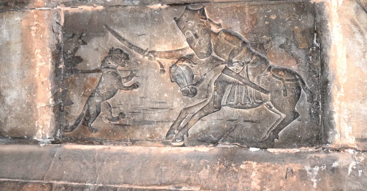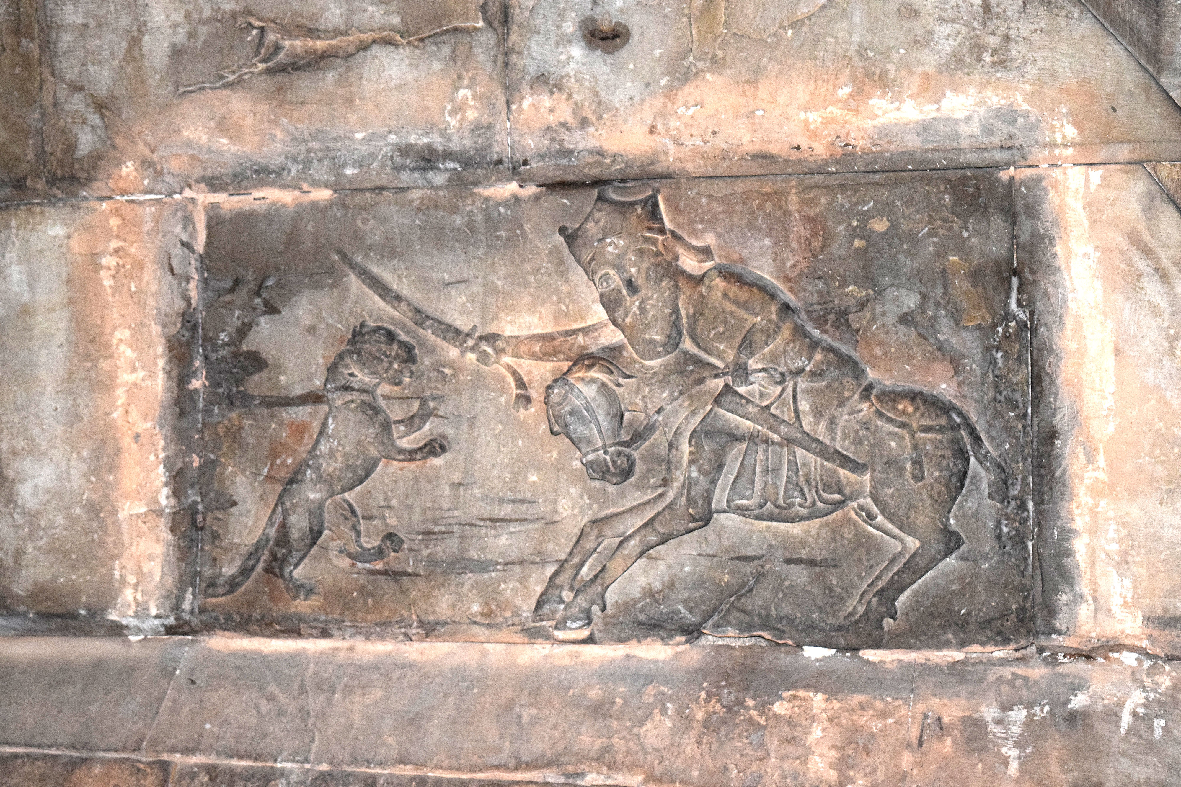 This medieval bas-relief of a hunting scene is located within the Surb Karapet Church at Noravank Monastery in modern Armenia.