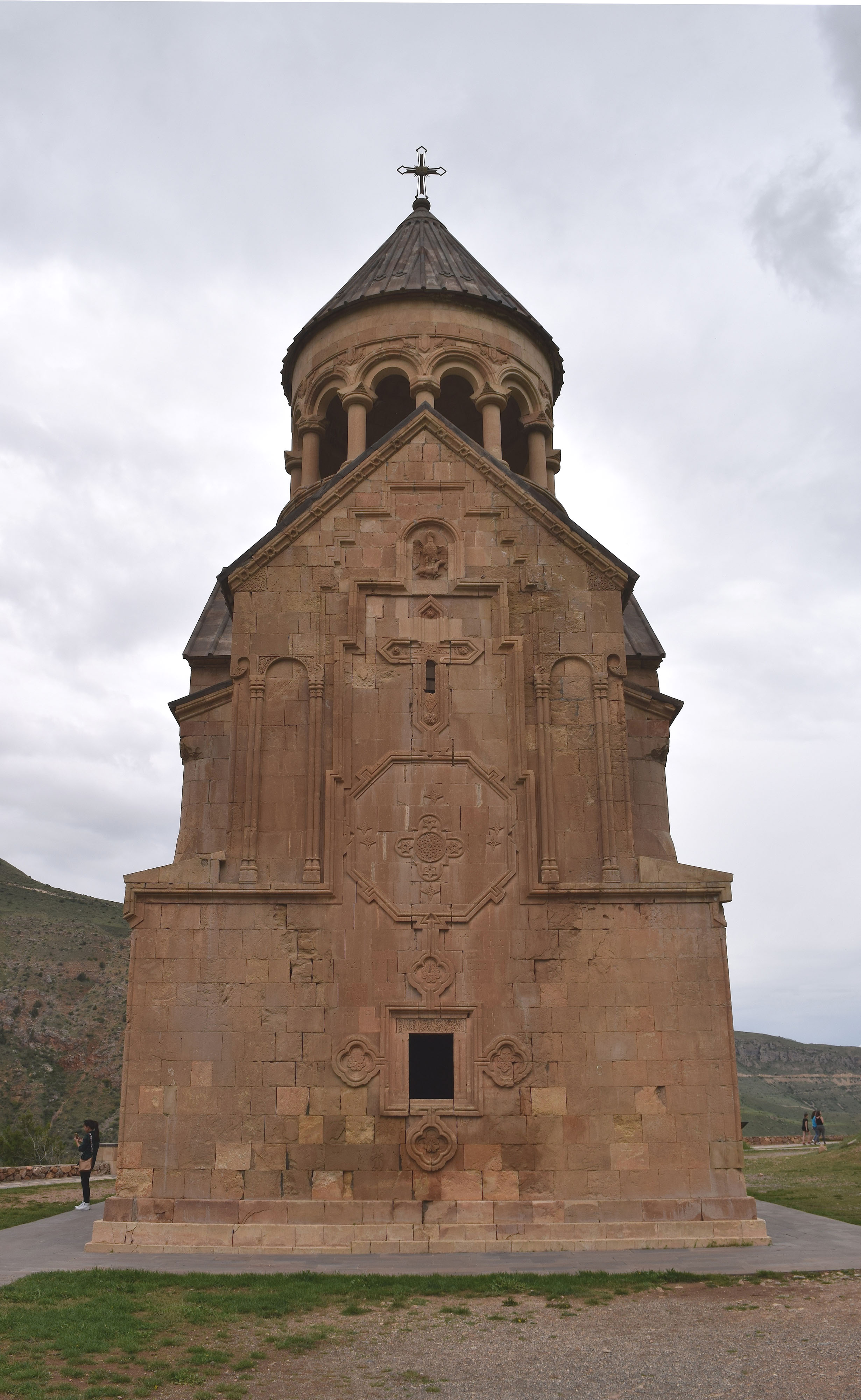 This is the back façade of the Surb Astvatsatsin Church, which forms part of the medieval Noravank Monastery in present-day Armenia.