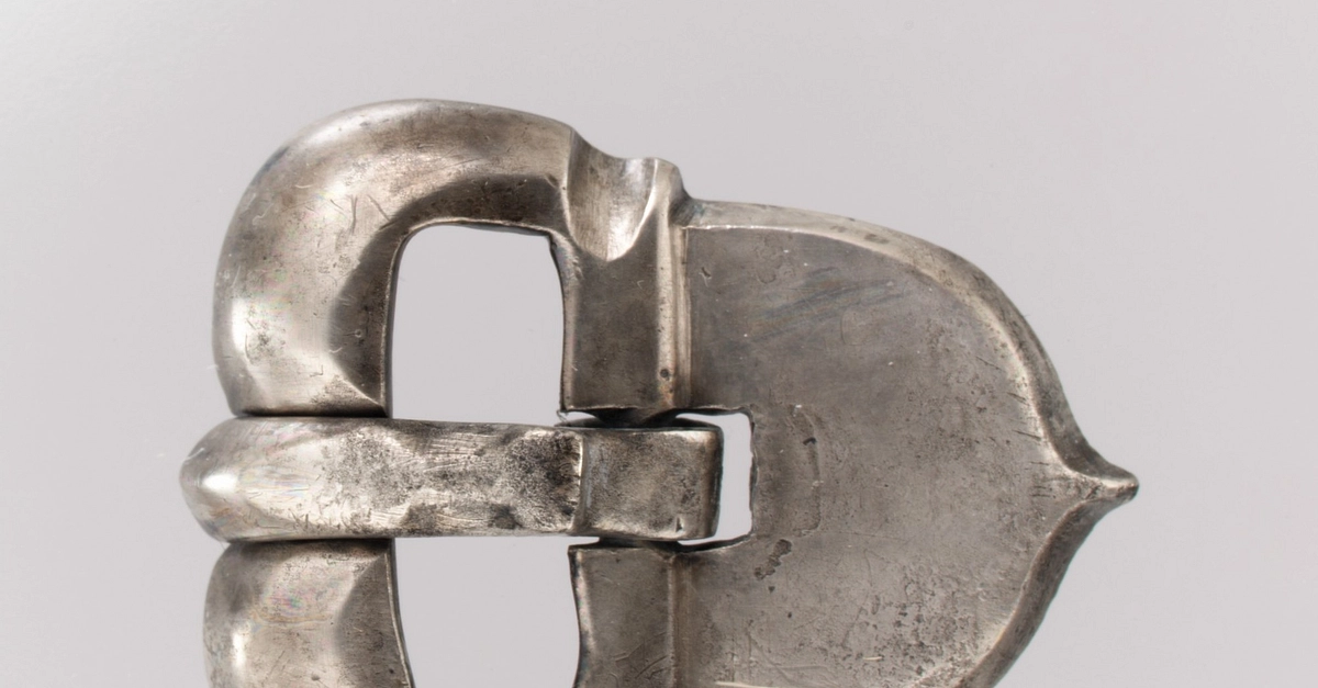 This shoe buckle, made of silver, dates to the 7th century CE. Measures 23 x 29 x 8 mm (Metropolitan Museum of Art, New York).