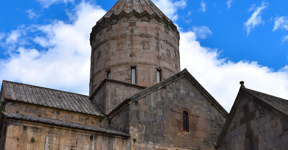 This is the exterior of the Church of St. Pogos and Petros at Tatev Monastery in Armenia. This church dates from the end of the 9th century CE. It was reconstructed several times over the centuries due to earthquakes.