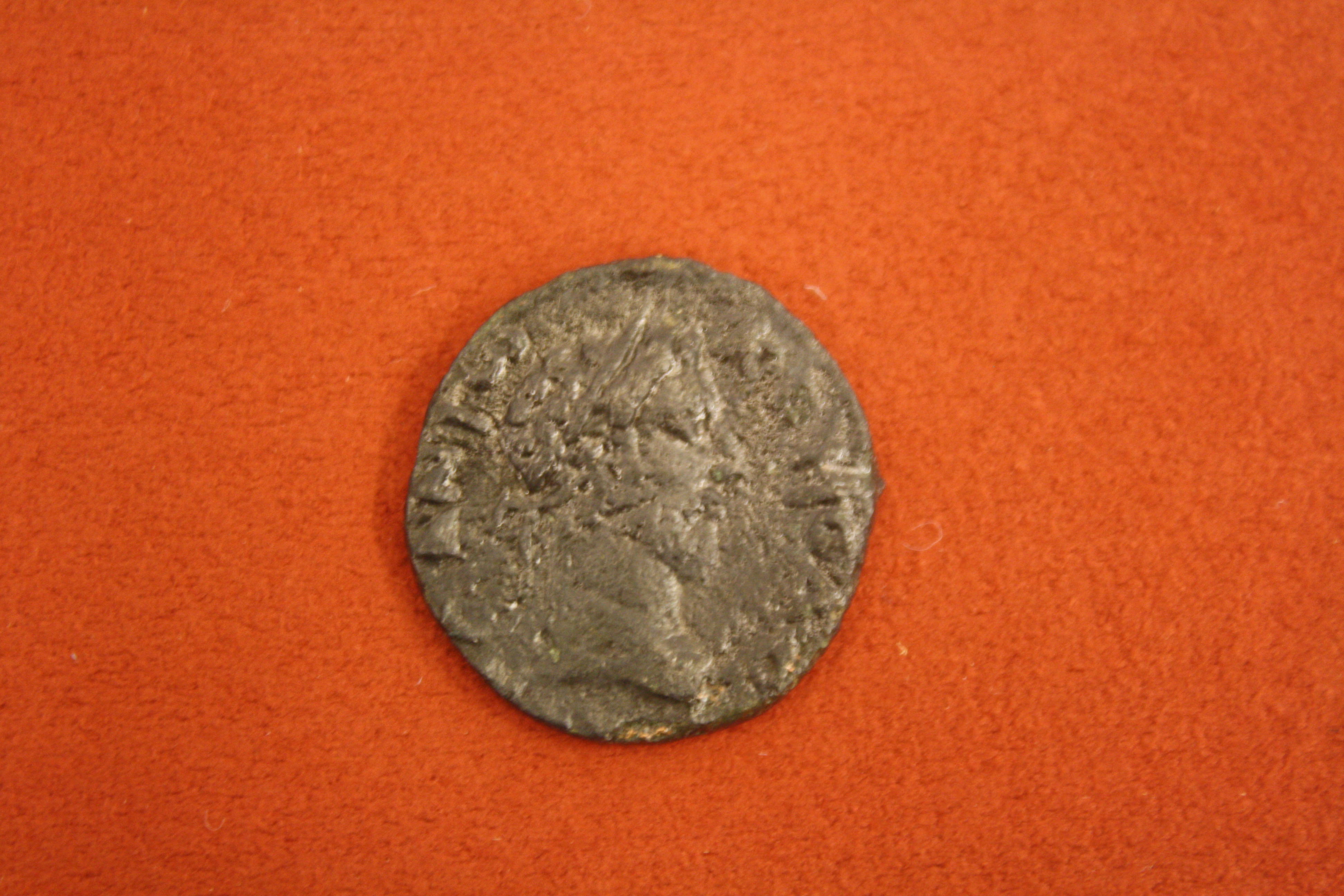 Bronze coin from Corycra (Corfu), reign of Commodus, 180-192 CE. O: Head of Commodus. (R: Zeus).
