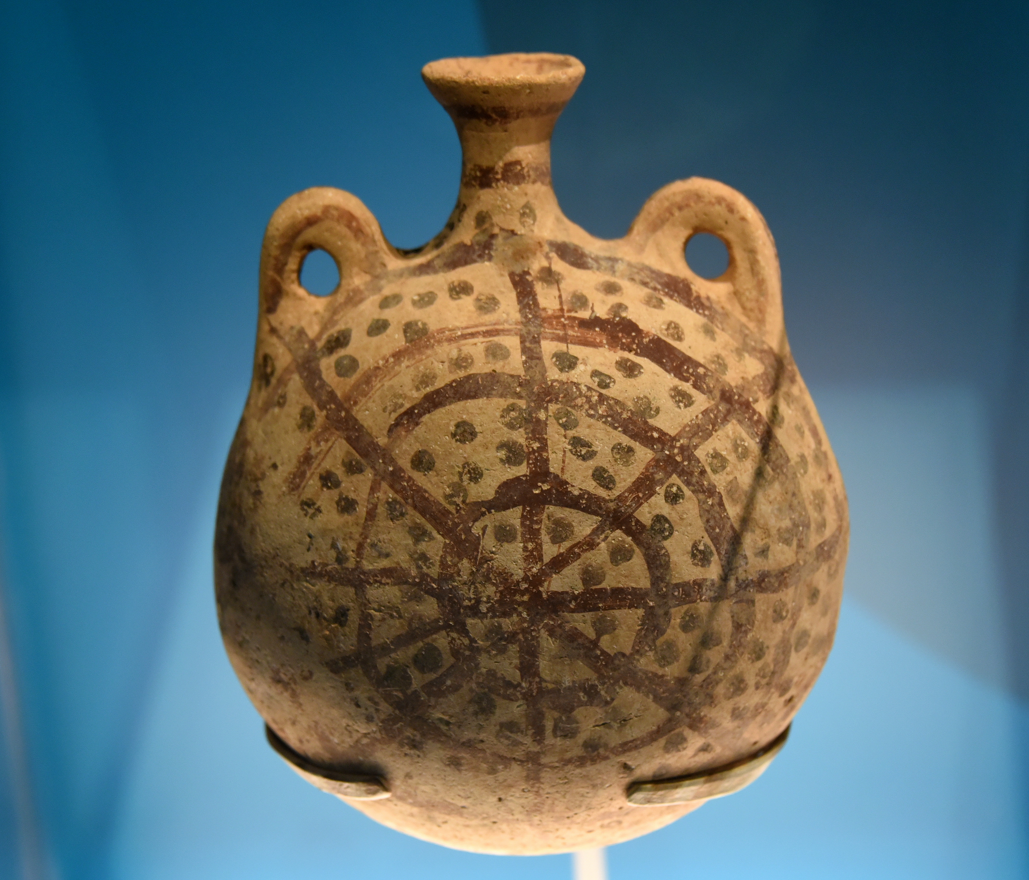 Ancient pottery pilgrim flask from modern-day Amman, Jordan Hashemite Kingdom, c. 1200-1000 BCE.