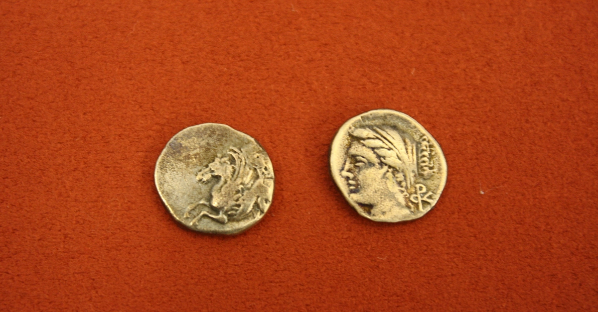 Silver hemidrachm from Corcyra (Corfu), 229-48 BCE. O: Pegasus. R: Head of Aphrodite.