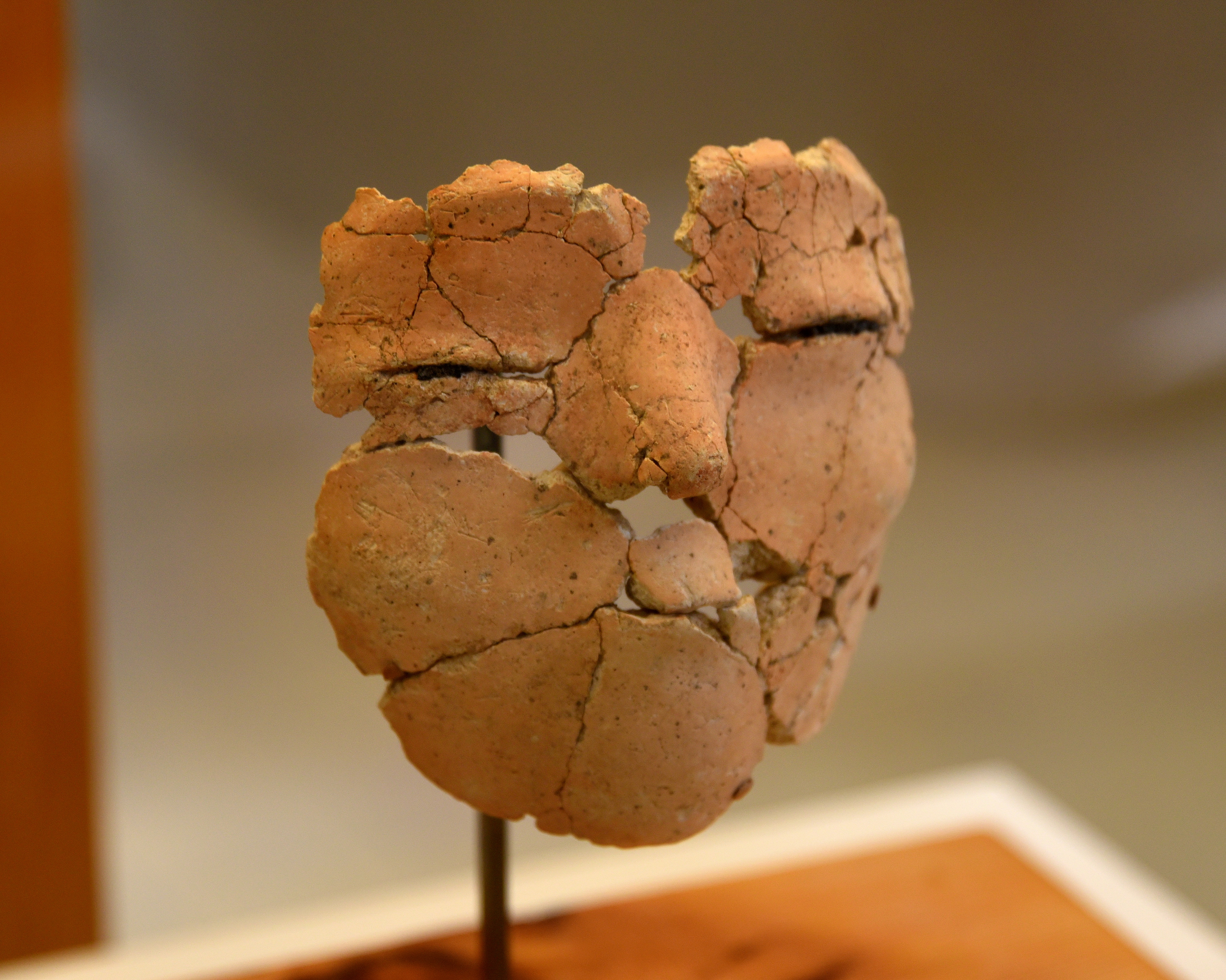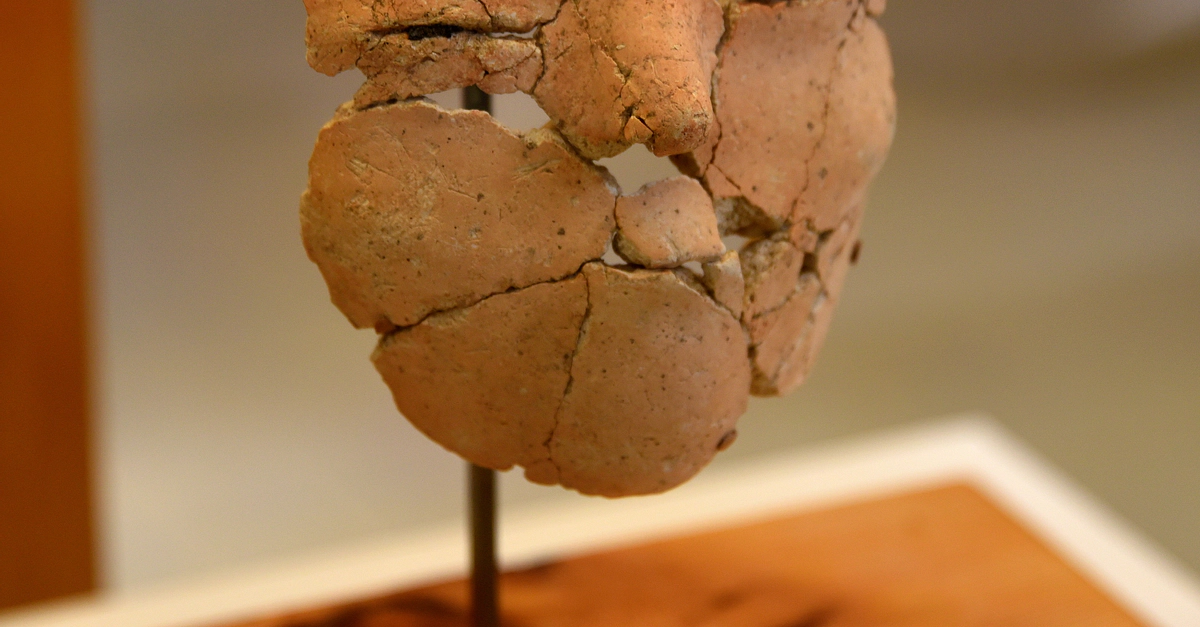 This plastered face was modeled on a human skull and was buried with a group of similar plastered faces. This mode of skull decoration was probably related to some sort of ancestor cult. From modern-day Ain Ghazal, outskirts of Amman, Jordan Hashemite Kingdom. Pre-Pottery Neolithic B, circa 6500 BCE. (The Jordan Archaeological Museum, Amman, Jordan).
