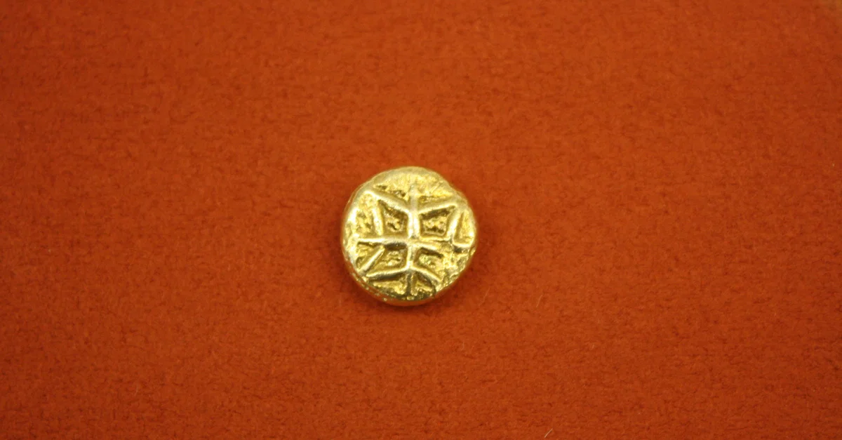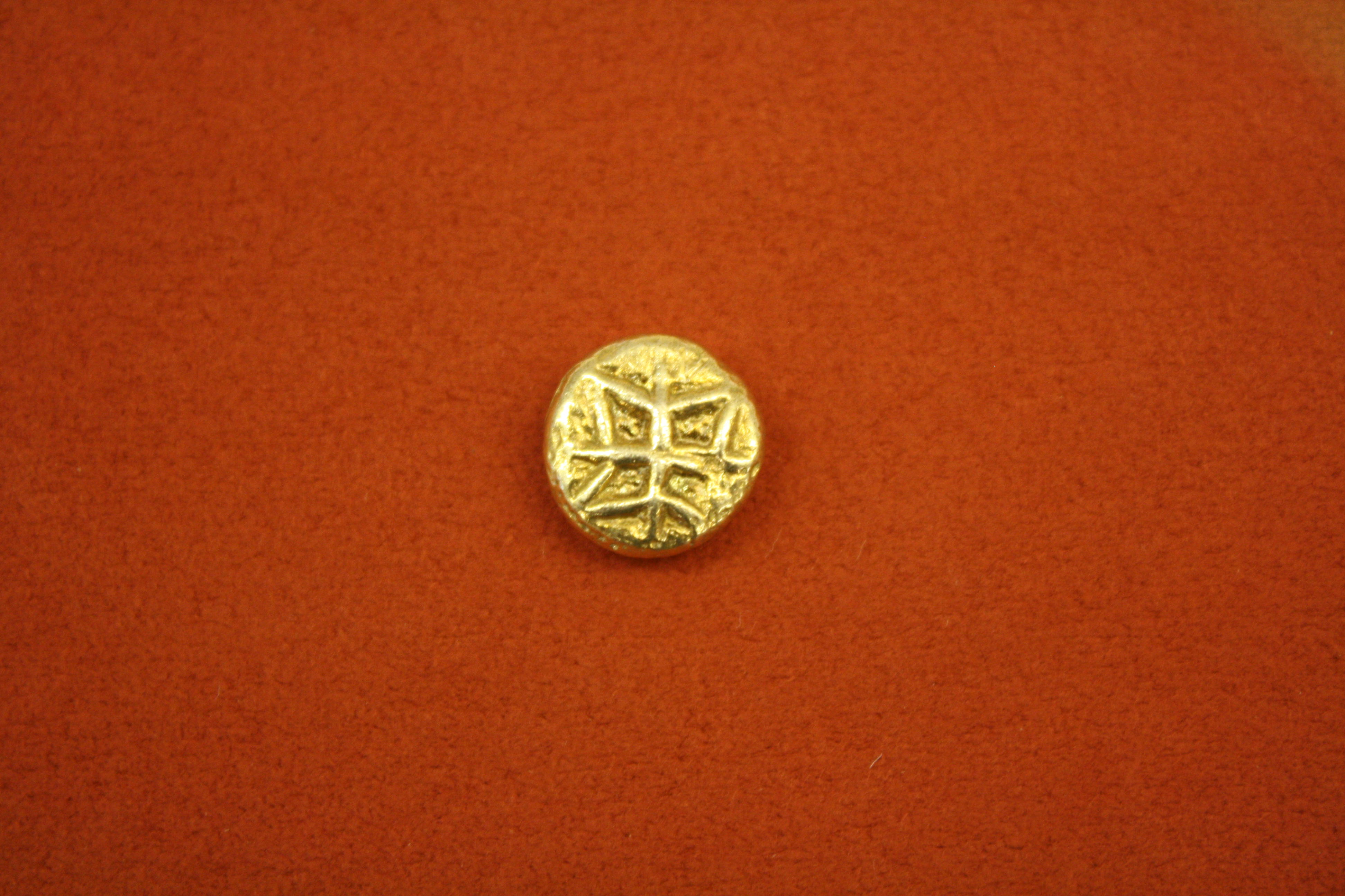 A third of a stater in electrum from either Ionia or Lydia, ca 600 BCE. O: Geometric motif. (R: Incuse oblong).