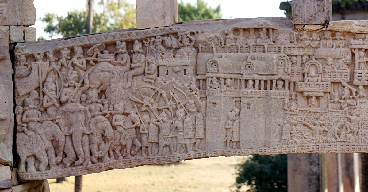 Dharma. (2018, April 09). “War over the Buddha’s Relics”, Sanchi. World History Encyclopedia. https://www.worldhistory.org/image/8565/war-over-the-buddhas-relics-sanchi/