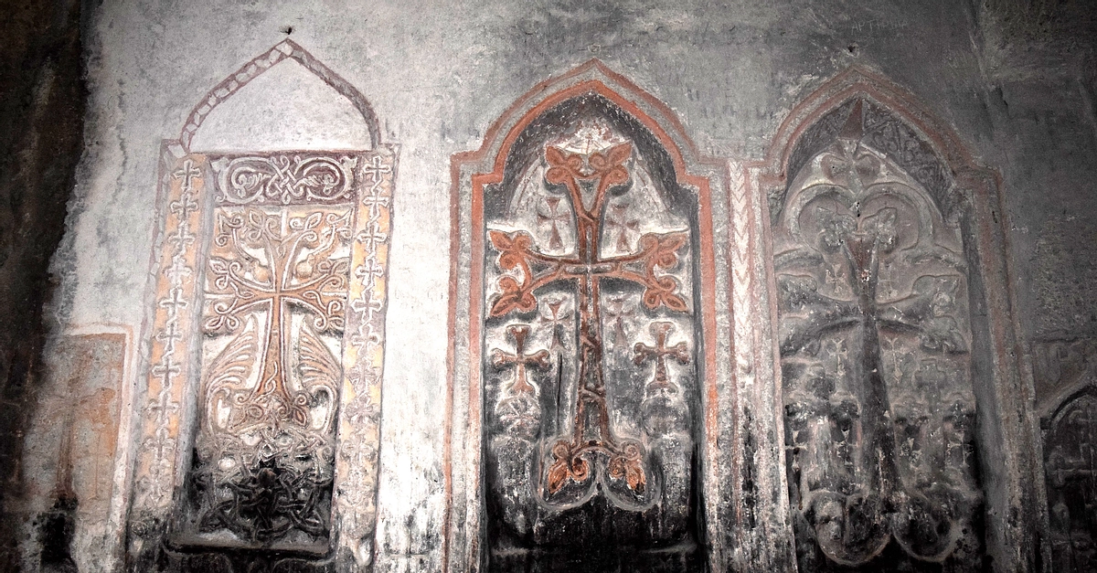 Wiener, J. B. (2018, April 10). Ancient Crosses at Geghard Monastery. World History Encyclopedia. https://www.worldhistory.org/image/8606/ancient-crosses-at-geghard-monastery/