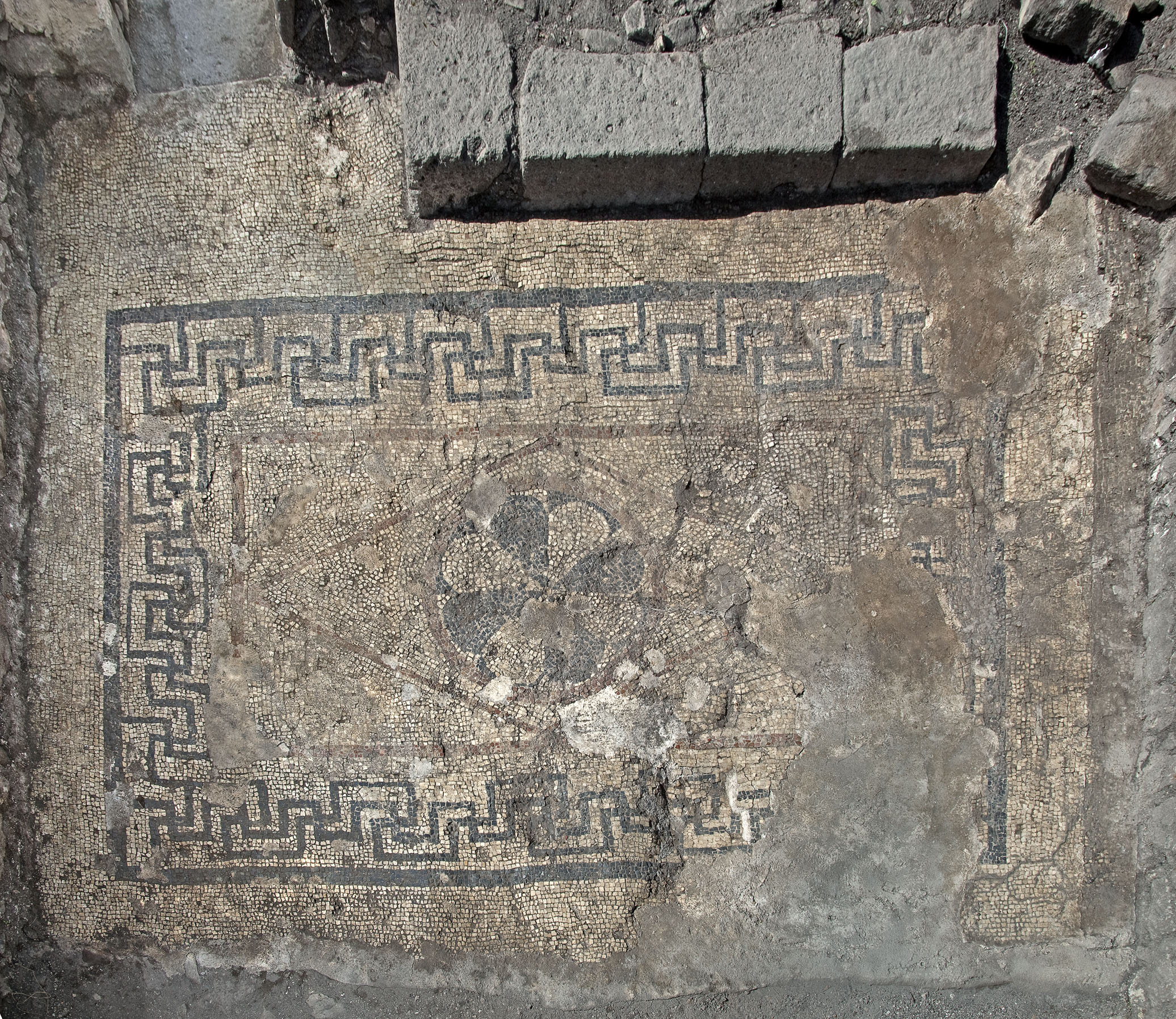 Room with a mosaic floor decorated with a rosette, in the ritual area of Magdala. Magdala was inhabited from the second century BCE to the third century CE.