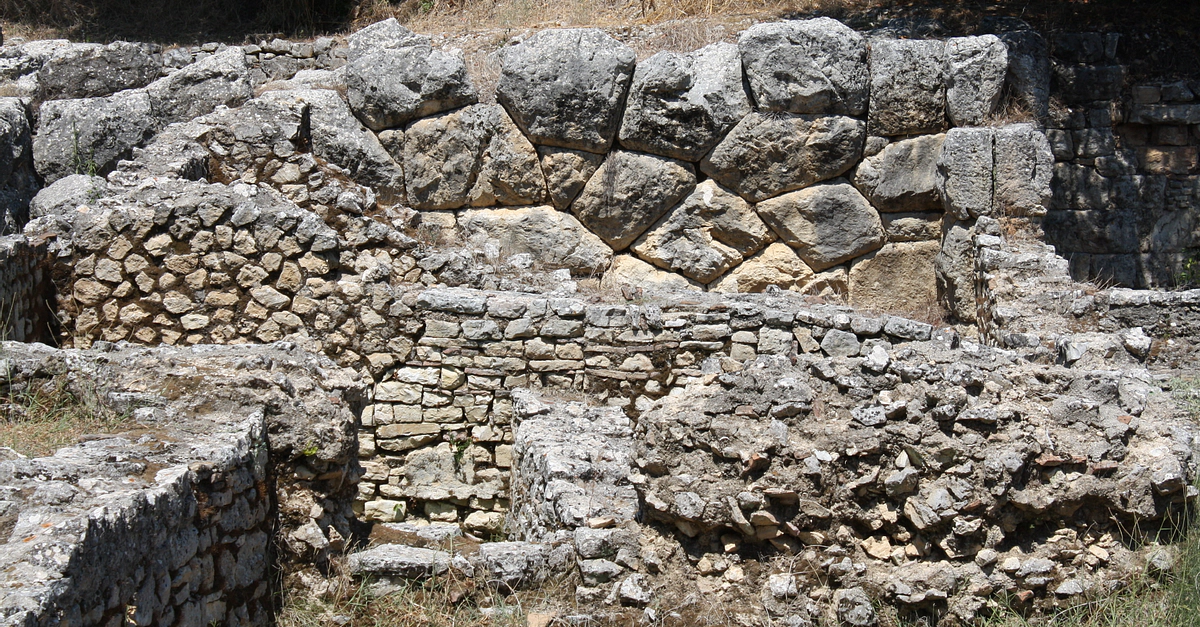 A detail of the Hellenistic fortification walls of Butrint (modern Albania) employing large polygonal blocks. 2nd century BCE.
