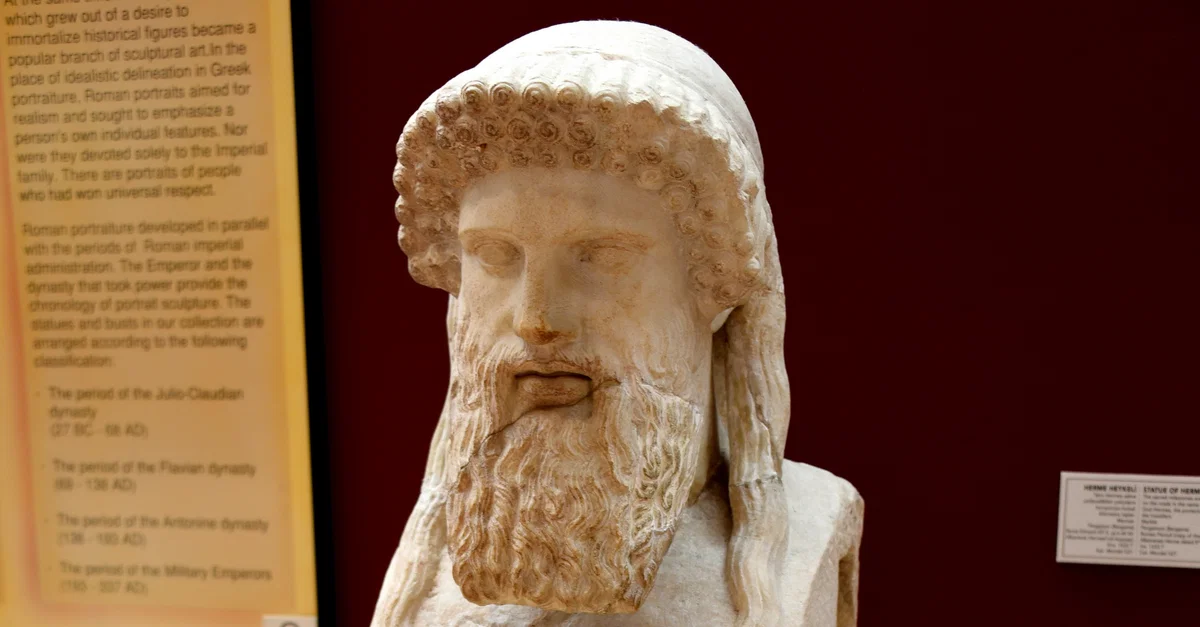The inscription on the frontal part of the pillar reads, in Greek, "You will recognize the fine statue by Alkamenes, the Hermes before the Gates, Pergamios gave it, know thyself". This is a copy of an original sculpted by the Greek sculptor Alkamenes of Athens, during the 5th century BCE. The Pergamene sculptor had copied the inscriptions as well. This statue was one the sacred milestones erected on the roads in the name of the god Hermes, the protector of the travelers. Roman Period. From Pergamon, Bergama, in modern-day Turkey. (Museum of Archaeology, Istanbul, Turkey).