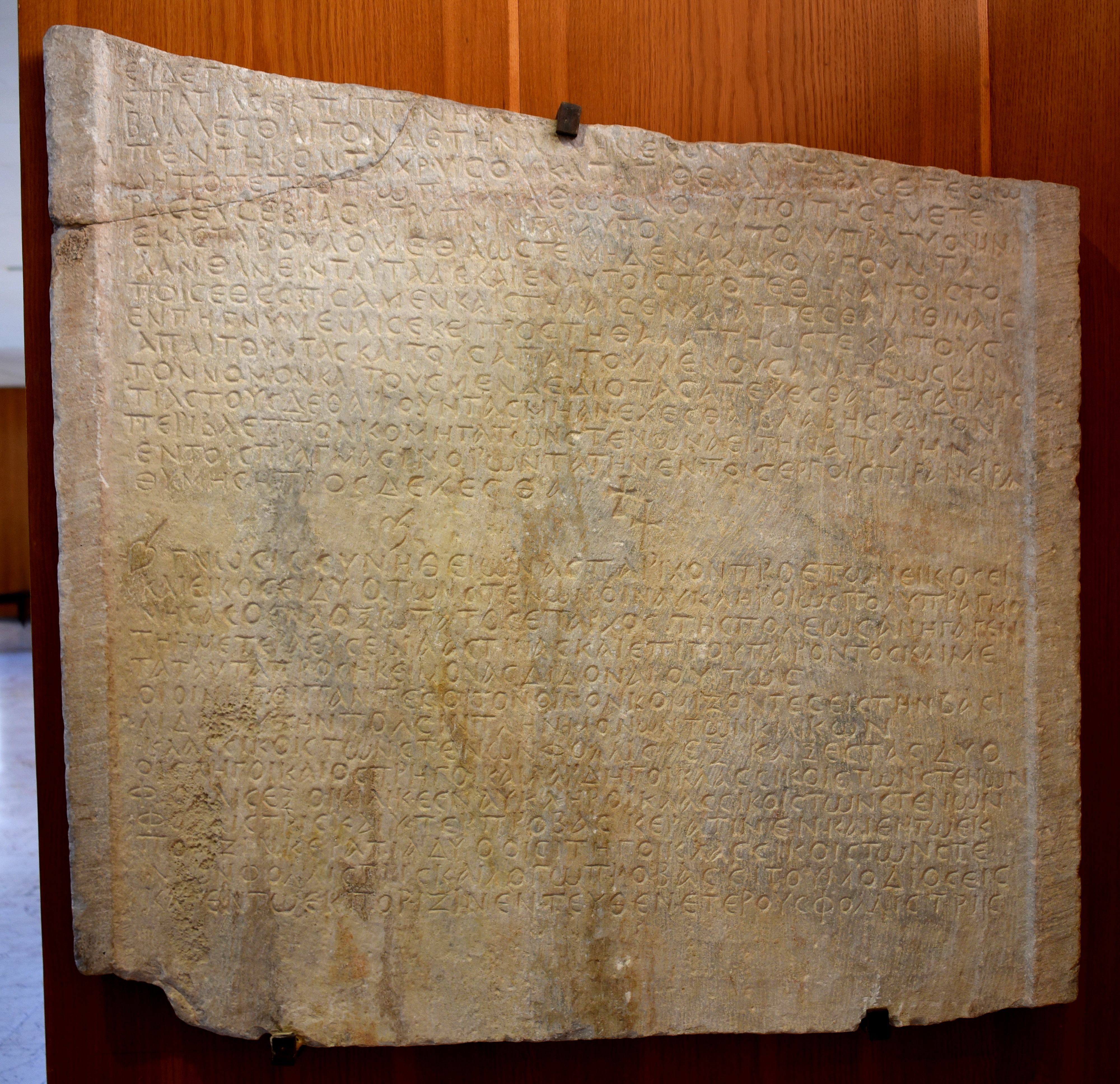 Marble slab inscribed in Greek. This is the law of the Byzantine Emperor Anastasius I Dicorus (reigned 491-518 CE), regulating the passage through Dardanelles customs. Byzantine Period, 6th century CE. From Abydos, Çanakkale, in modern-day Turkey. (Museum of Archaeology, Istanbul, Turkey).