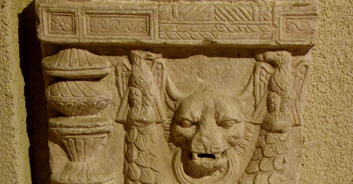 This fragment is from a base of a sarcophagus. Roman Period. From Palmyra, in modern-day Syria. (Museum of Archaeology, Istanbul, Turkey).