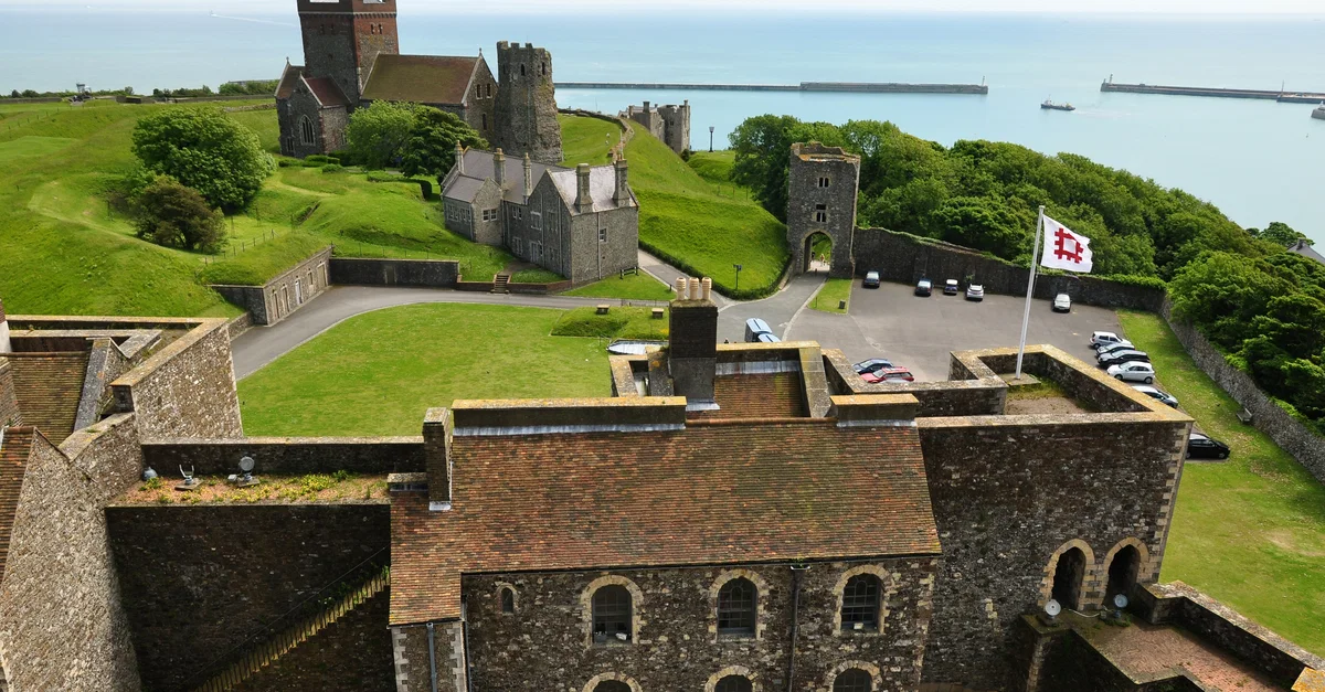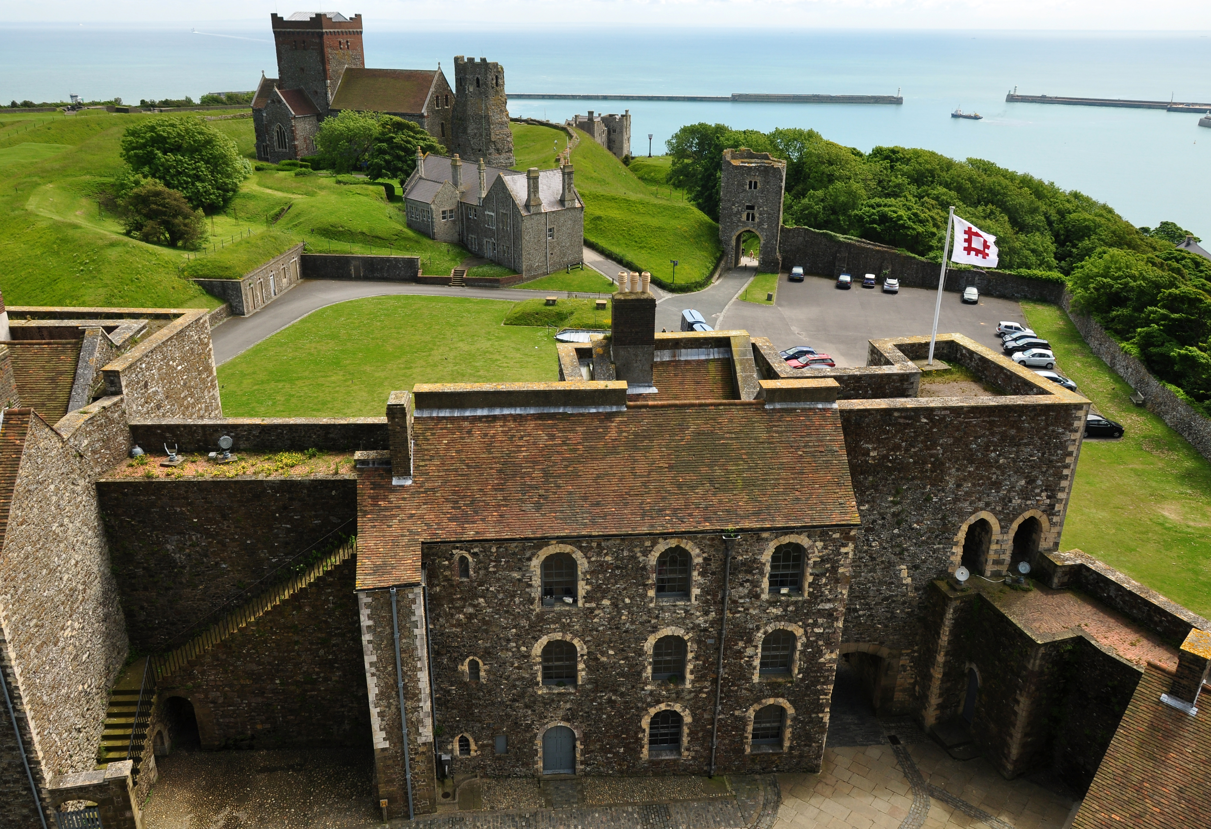 The view south from the keep of Dover Castle. The castle was first built by William the Conqueror in the 11th century CE and it was then extensively rebuilt with new walls and a keep added by Henry II (r. 1154-1189 CE). The Saxon church of St. Mary predates the castle itself.