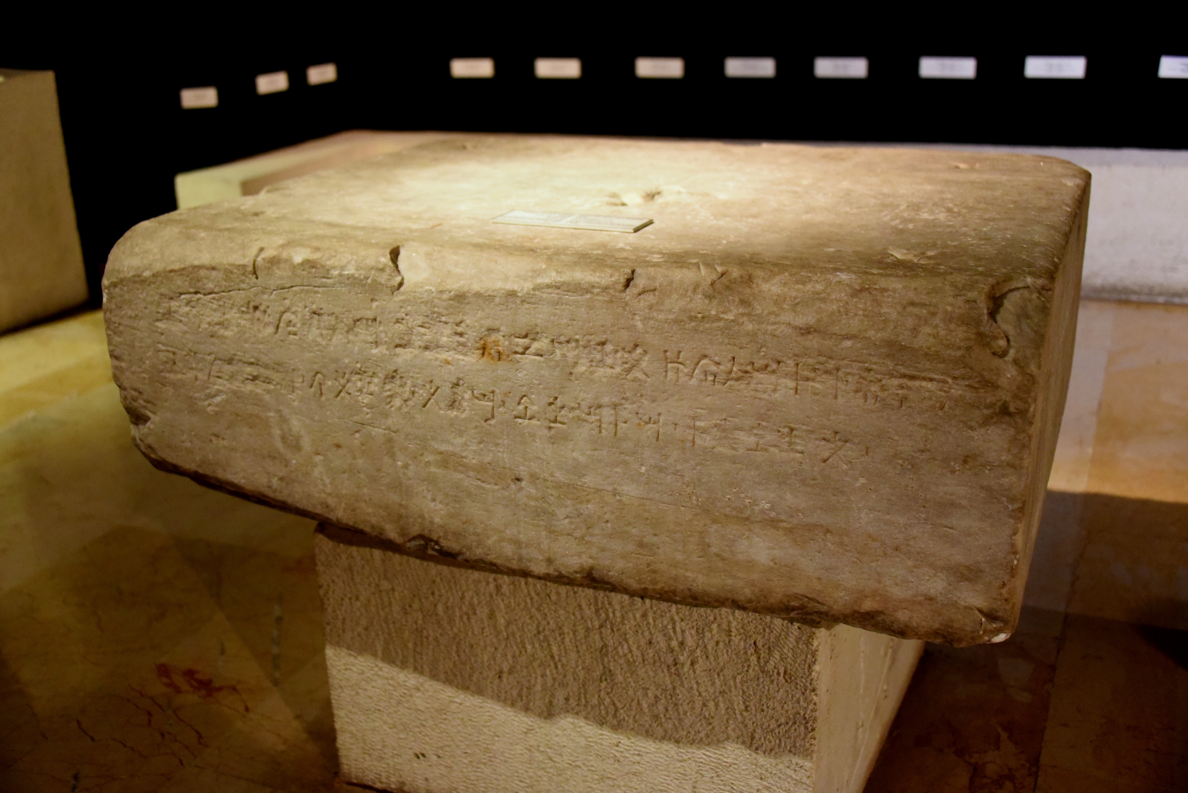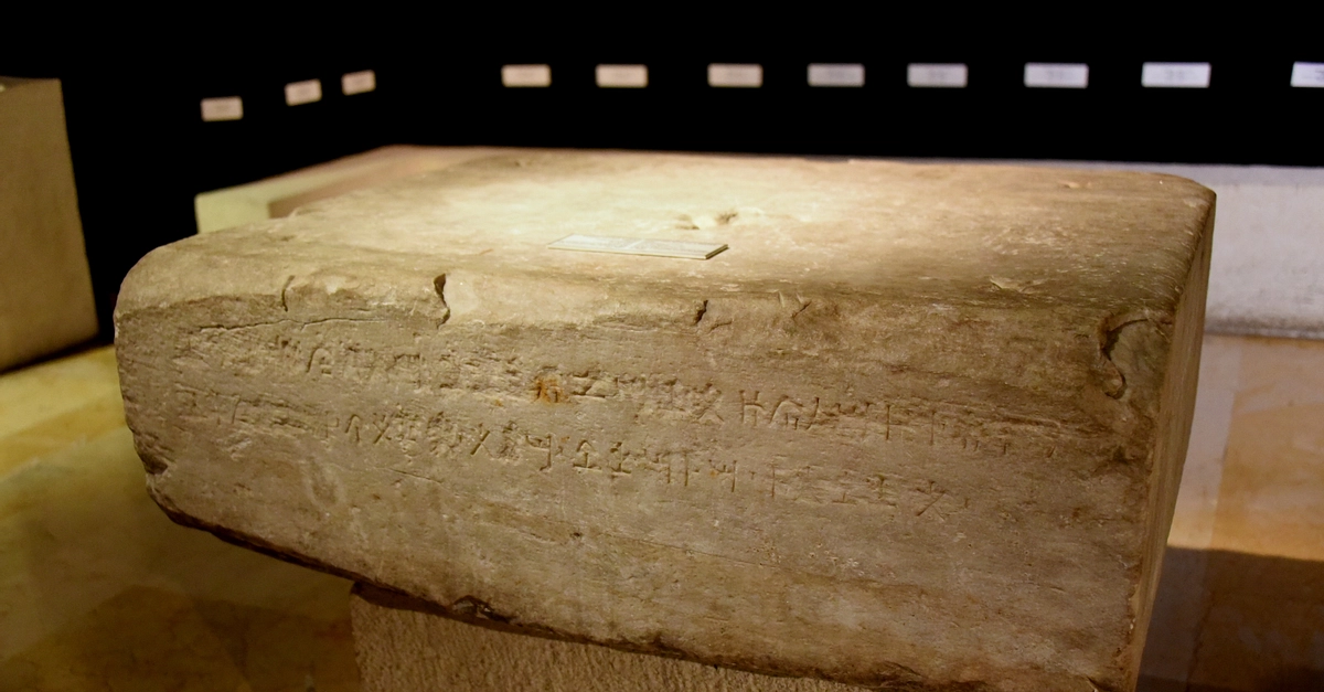 There are two lines of inscription on this marble stone, which read: "Nikokles, King of Paphos, Wanassa Priest King, Son of Timarkhos, erected for goddess". Early Hellenistic Period, end of the 4th century BCE. From Palaepaphos (Kouklia), in modern-day Cyprus. (Museum of Archaeology, Istanbul, Turkey).