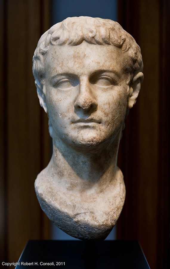Marble bust of Roman Emperor Caligula, 40 AD (Getty Villa,Malibu,CA,USA)