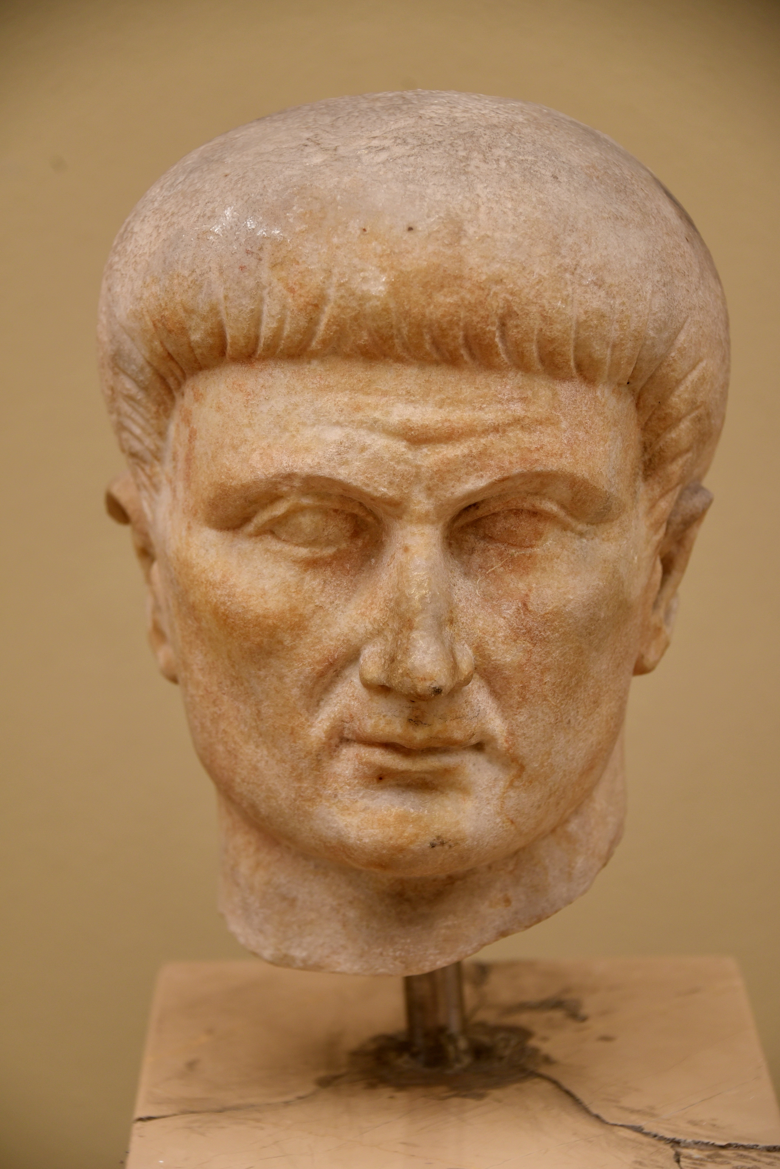 This marble head of the Roman Emperor Tiberius (reigned 14-37 CE) was reused in the Forum during the reign of Constantine I (reigned 272-337 CE). From Çemberlitaş, Fatih, Istanbul, in modern-day Turkey. (Museum of Archaeology, Istanbul, Turley).