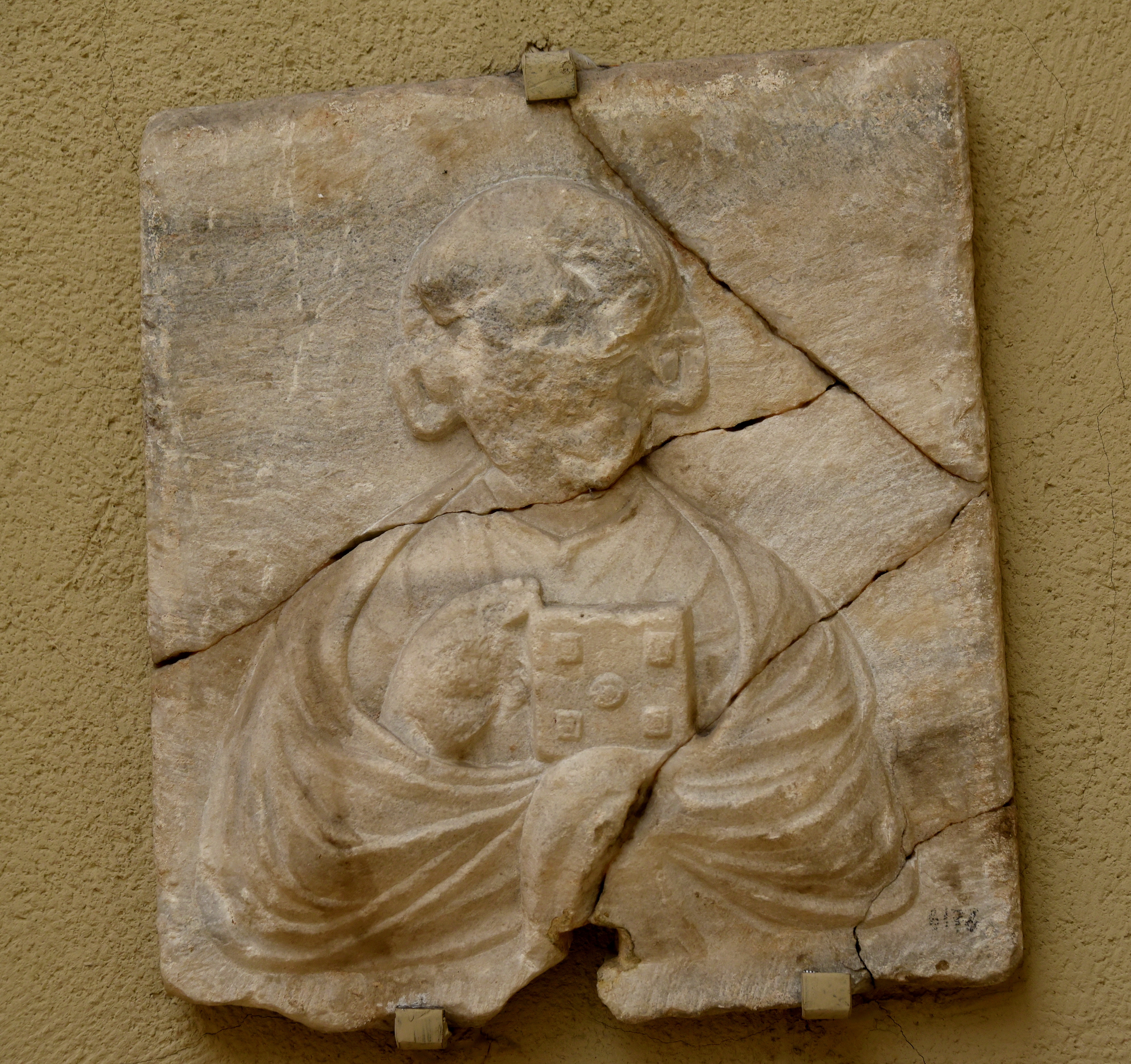 This marble icon depicts an unidentified image of an apostle. 6th century CE. From the Saraçhane excavations, Istanbul, in modern-day Turkey. (Museum of Archaeology, Istanbul, Turley).