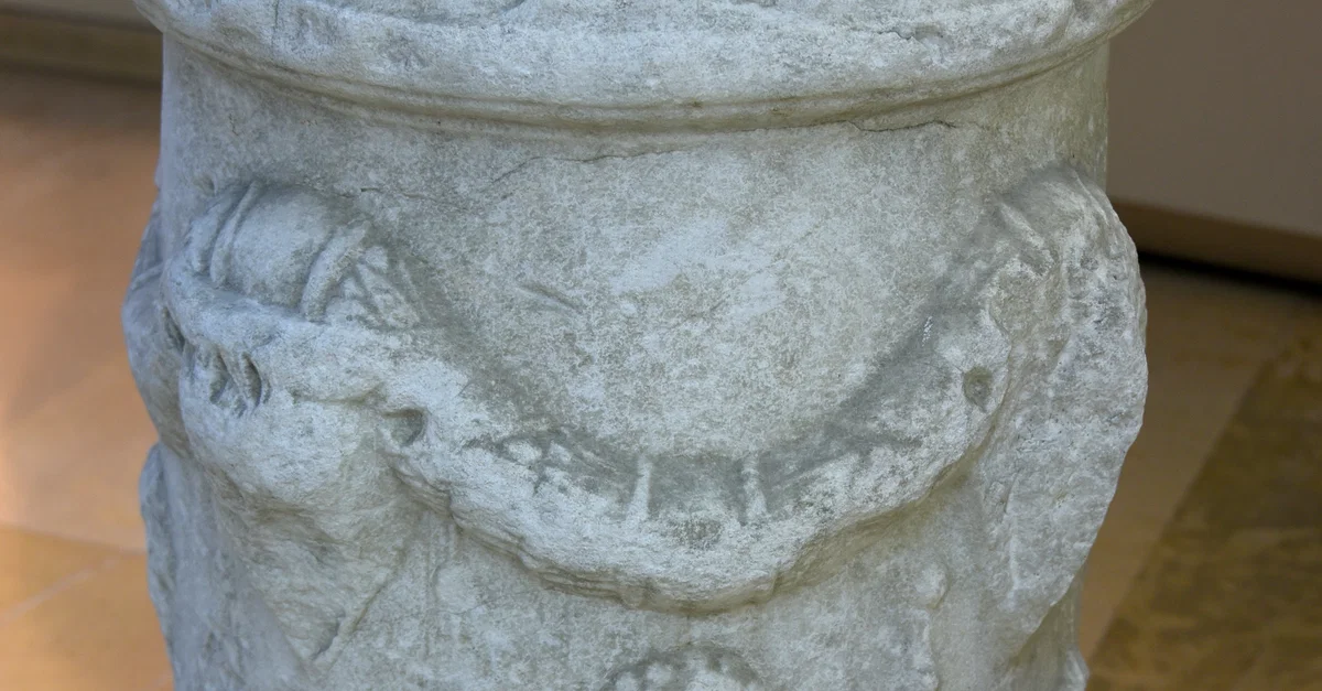 This marble altar is decorated with a garland. 2nd to 1st century BCE. From Kuruçeşme, Istanbul, in modern-day Turkey. (Museum of Archaeology, Istanbul, Turley).