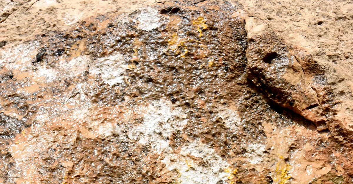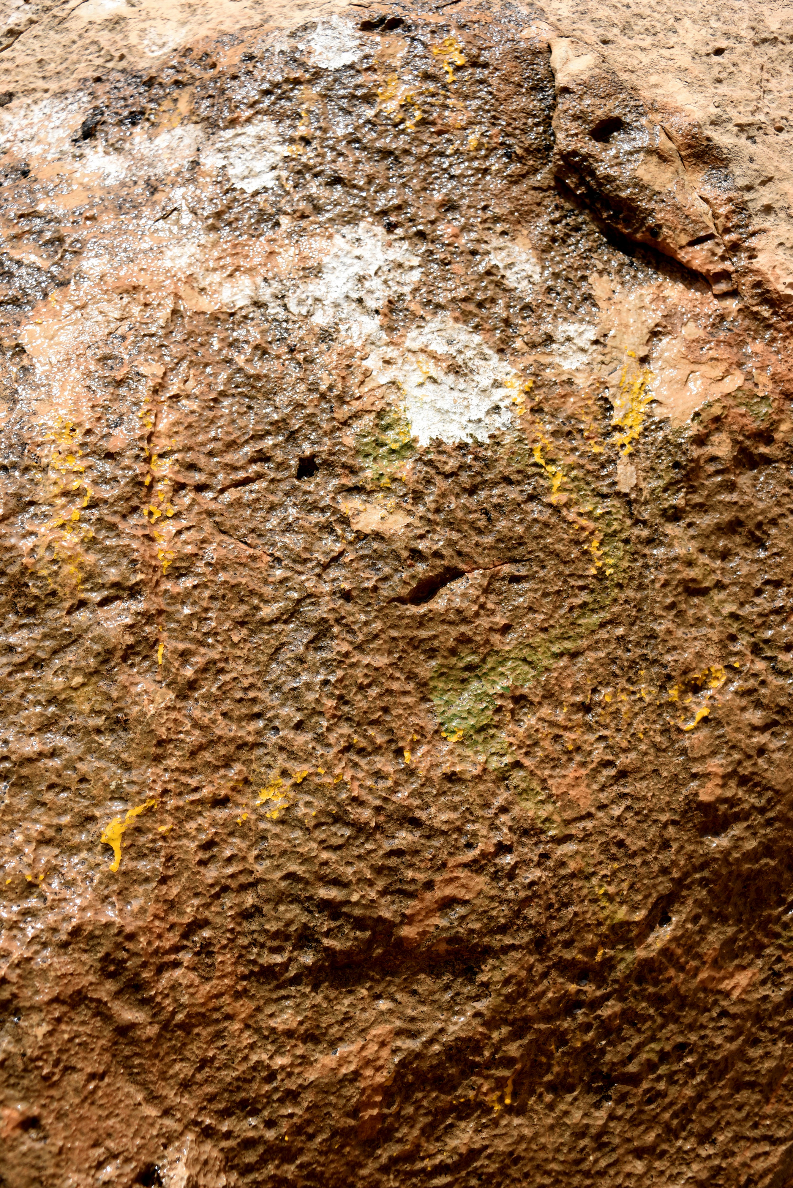 This rock relief lies within Darband-i Basara, which transects the upper part of Qaradagh Mountain Ridge. The rock relief is composed of two separate scenes. The main scene is within a sunken square area (not shown) while this is the smaller and minor scene which was carved on the right, outside of that square. The main scene is thought to be Lulubian while this low relief seems to be added later on but it's unknown when it was carved. What has survived here is the lower part of a standing figure, wearing an ankle-length dress, looking to the right. Water was poured on the relief to highlight its details before taking the photo. The white and yellow paints are modern. The main relief dates to the late 3rd millennium to early 2nd millennium BCE. Sulaymaniyah, Kurdistan, Iraq.