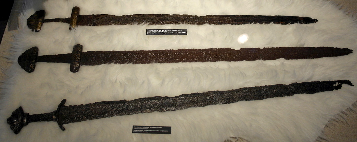 Three Viking Age swords dated to between c. 750-950 CE are shown here. They were found in the river Meuse near Den Bosch, Aalburg and Wessem, in the Netherlands. They now belong to the collections of the Rijksmuseum van Oudheden in Leiden and the Centre Céramique in Maastricht, both also in the Netherlands.