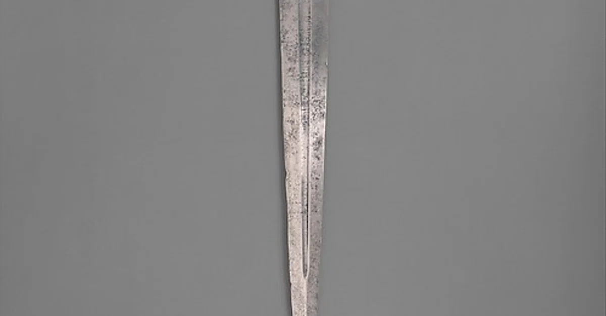 A medieval Great Sword, c. 1400 CE. This weapon was the typical weapon of a European knight. L. 40 1/4 in. (102.2 cm); L. of blade 32 in. (81.3 cm); Wt. 3 lb. 11 oz. (1673 g). (Metropolitan Museum of Art, New York)