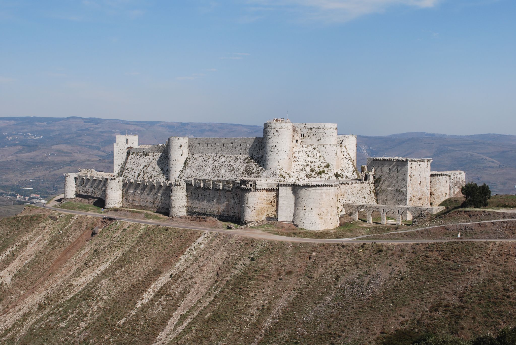 The castle of Krak des Chevaliers, Syria. Originally built for the Emir of Aleppo in 1031 CE, the castle was given to the Knights Hospitaller in 1144 CE, who extensively rebuilt it.