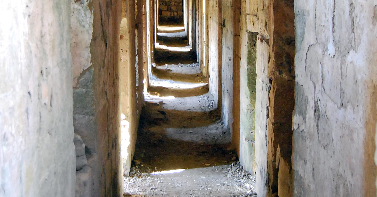 A mural passage (corridor built within a wall) at the castle of Krak des Chevaliers, Syria. Originally built for the Emir of Aleppo in 1031 CE, the castle was given to the Knights Hospitaller in 1144 CE, who extensively rebuilt it.