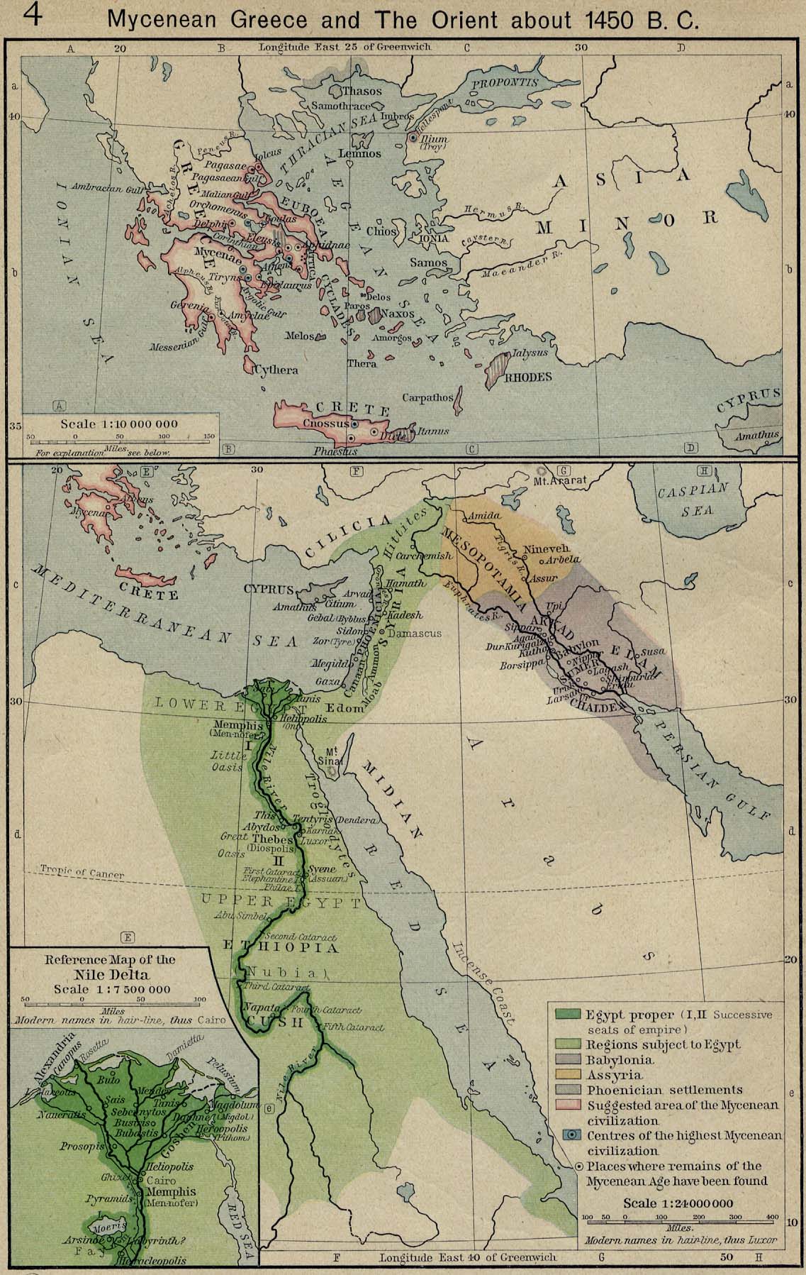 Shepherd, W. R. (2012, April 26). Mycenean Greece and the Orient about 1450 BC. World History Encyclopedia. https://www.worldhistory.org/image/89/mycenean-greece-and-the-orient-about-1450-bc/