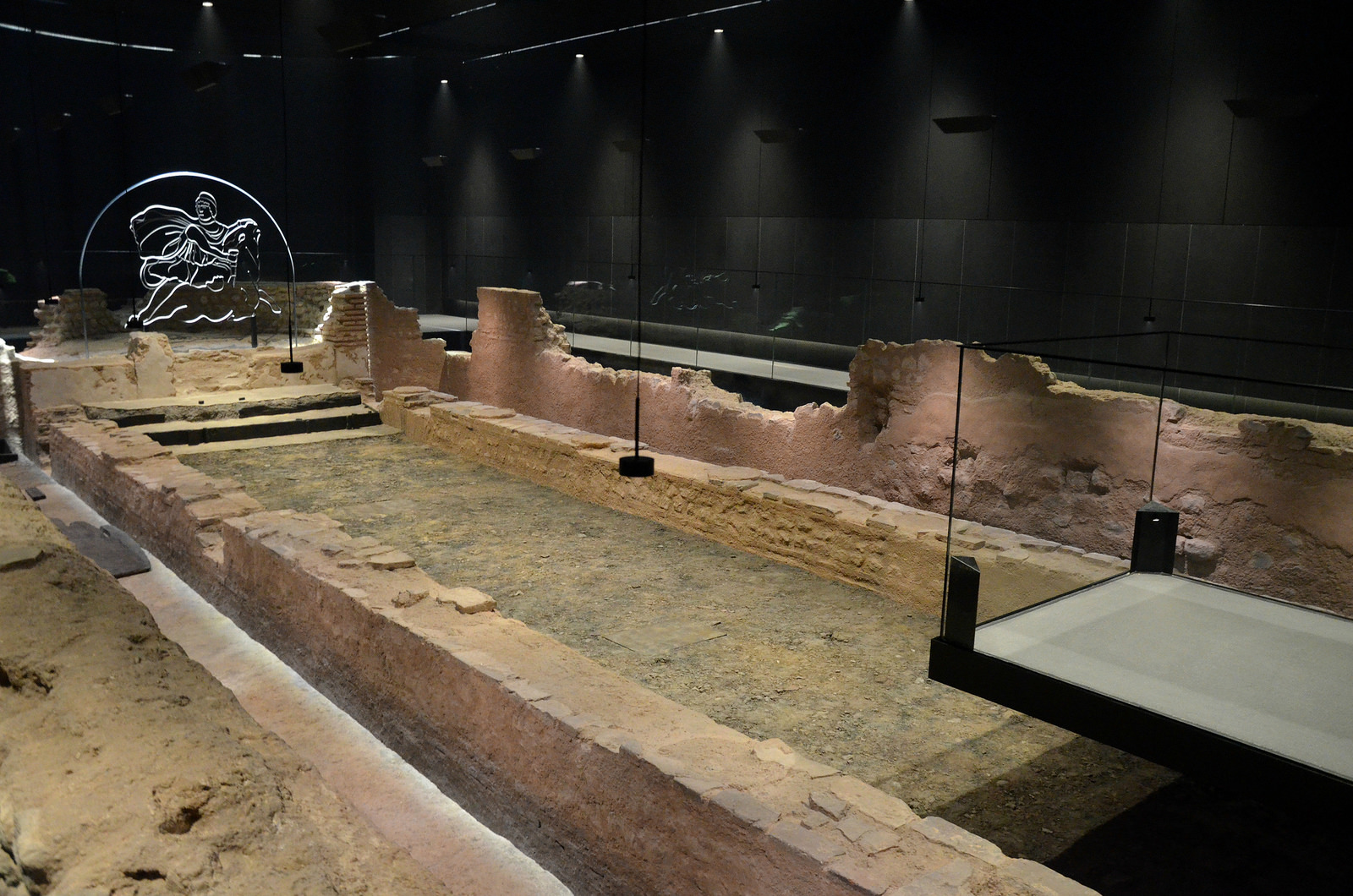 The remains of the London Mithraeum, dramatically presented inside the modern Bloomberg Building in the city of London. The Temple, dedicated to the god Mithras, the Lord of Light, was built in the 3rd century CE by an unknown Roman citizen of Londinium in the garden of his home, next to one of London’s lost rivers, the Walbrook.