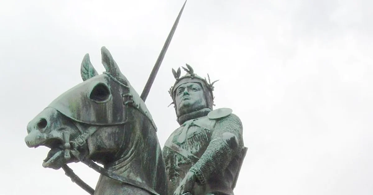 A statue of Robert du Guesclin (c.1320-1380 CE), a French knight and national hero also known as the ‘Eagle of Brittany’. (Sculptor: Emmanuel Fremiet. Dinan, France)