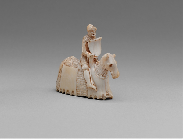 An ivory chesspiece depicting a medieval knight. c. 1350-60. Height: 6.1 cm. (Metropolitan Museum of Art, New York)