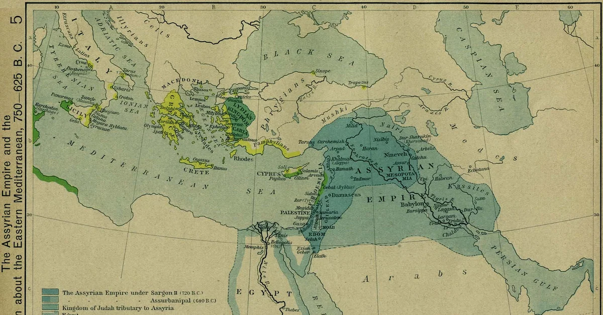 Shepherd, W. R. (2012, April 26). The Assyrian Empire and the Region about the Eastern Mediterranean, 750-625 BC. World History Encyclopedia. https://www.worldhistory.org/image/90/the-assyrian-empire-and-the-region-about-the-easte/