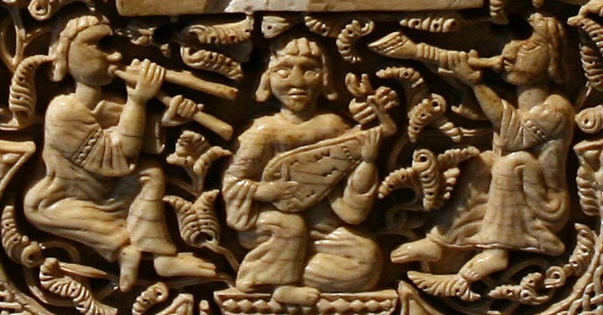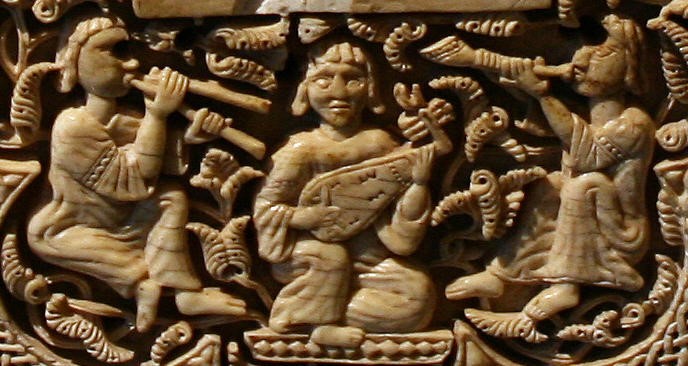 Medallion of the Pamplona casket that shows a scene with an orchestra (11th century CE). Museo de Navarra, Pamplona (Spain).