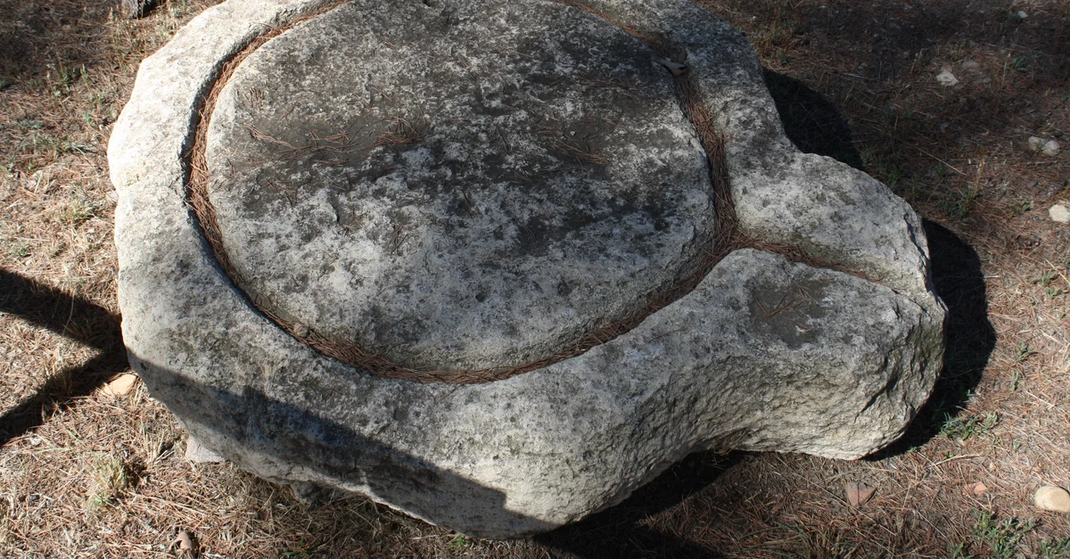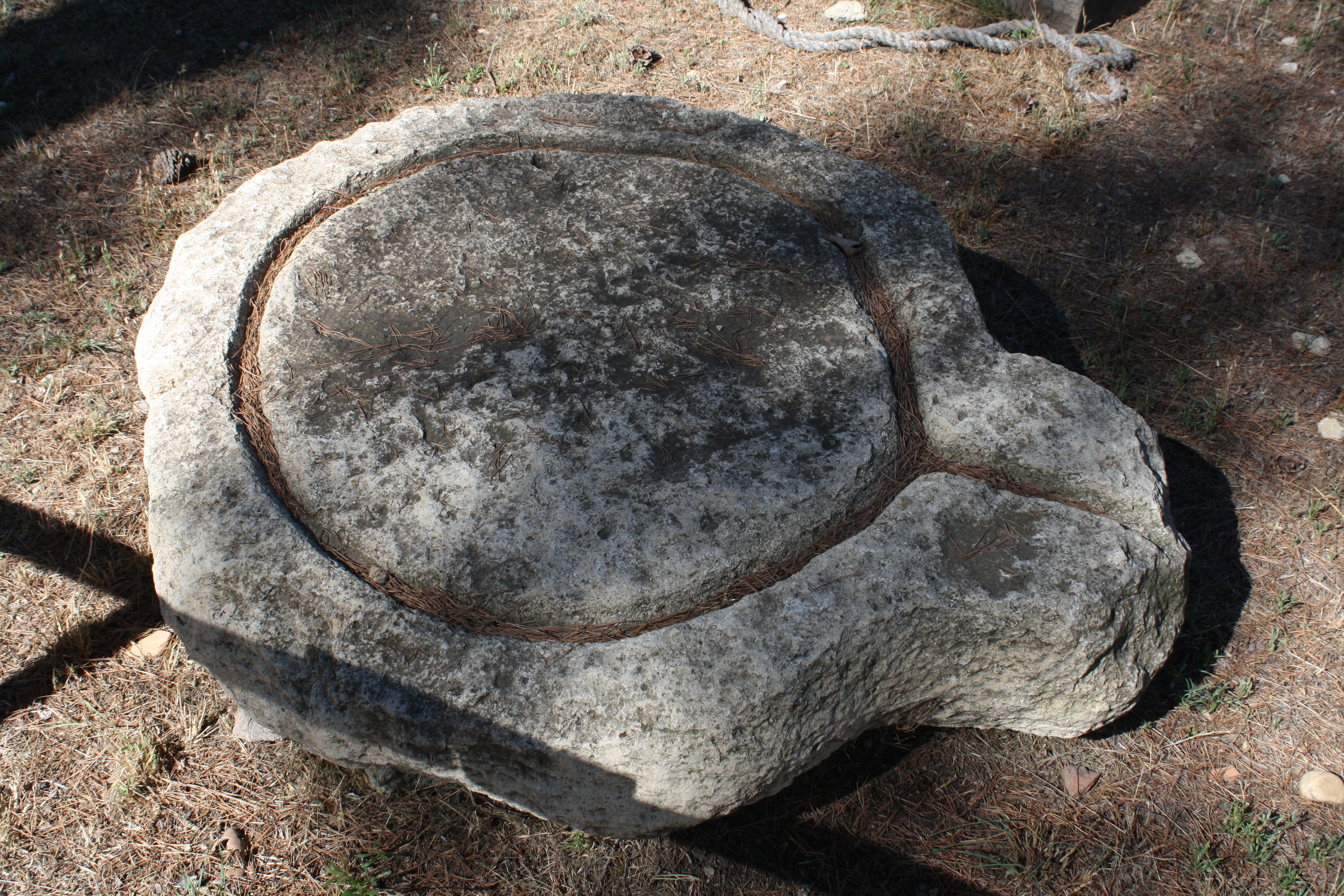 A stone from an olive press used to collect the oil from the pressed olives and pour it into a waiting receptacle. 6th-2nd century BCE, Saint Blaise, France.